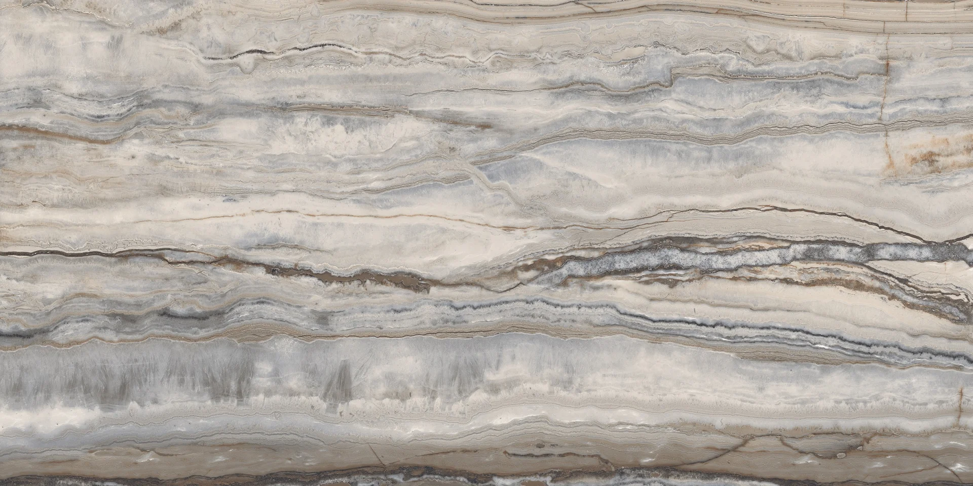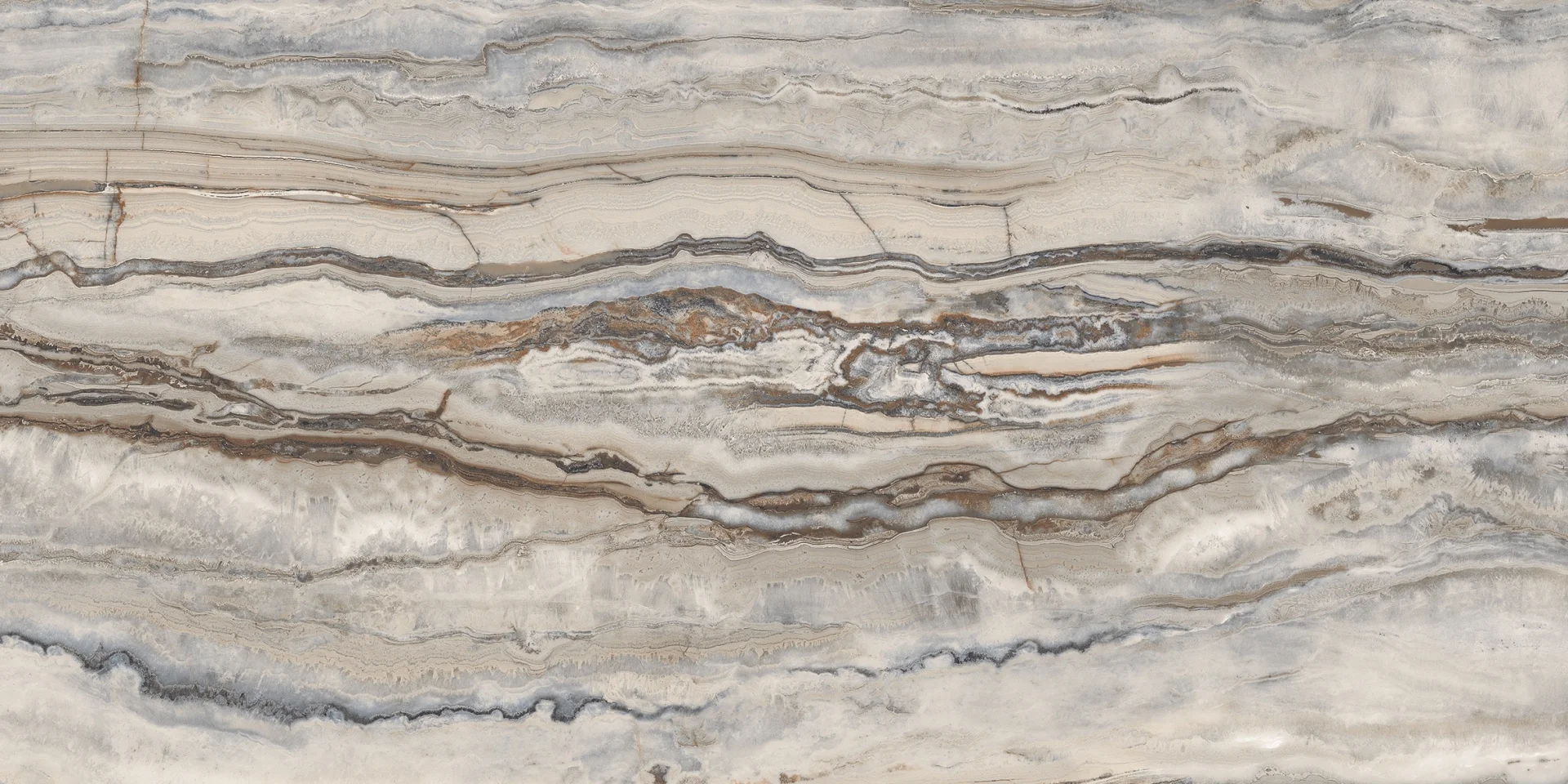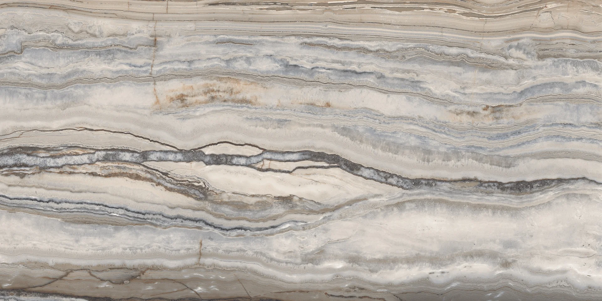 GRESIE WAVY BLUE - 60X120 cm, porțelanată lucioasă, rectificata, model cu nuanțe de albastru și bej, aspect de piatră naturală stratificată, ideală pentru interior și exterior.