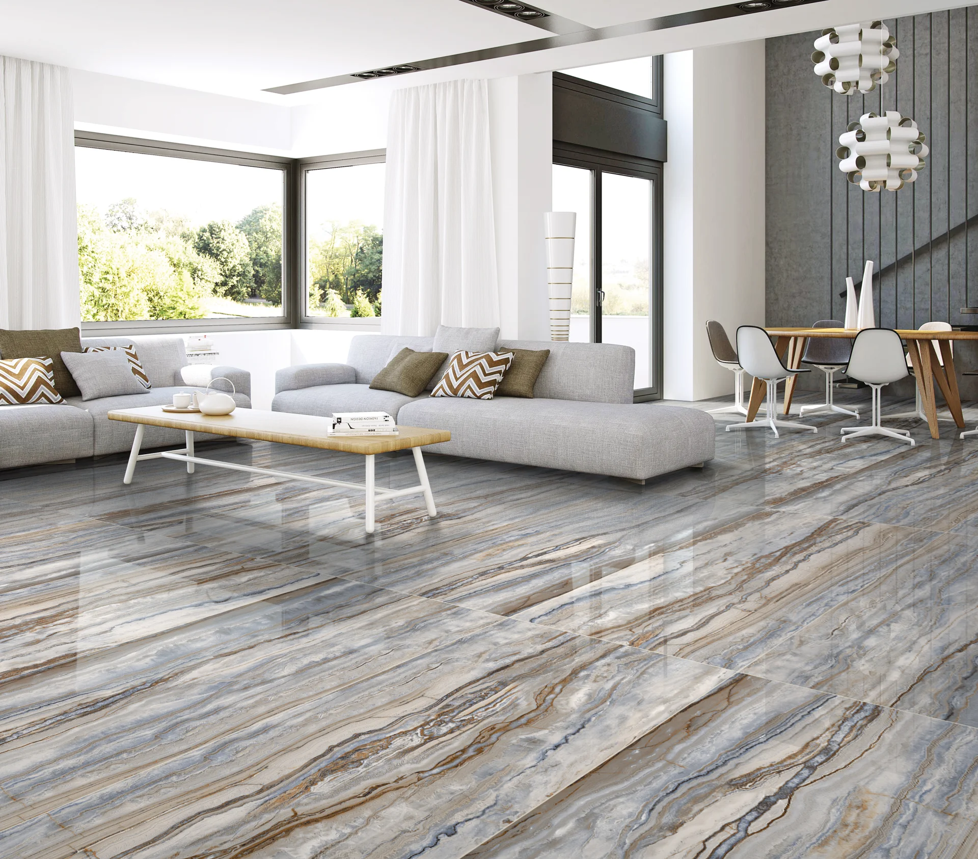 • Culoare: Albastru, gri, bej – efect stratificat natural