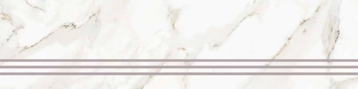 TREAPTA GRESIE SAHARA GREEN - 120X30 cm, portelanata, glazurata, lucioasa, rectificata, interior-exterior, aspect de marmura alba cu insertii crem si maronii.
