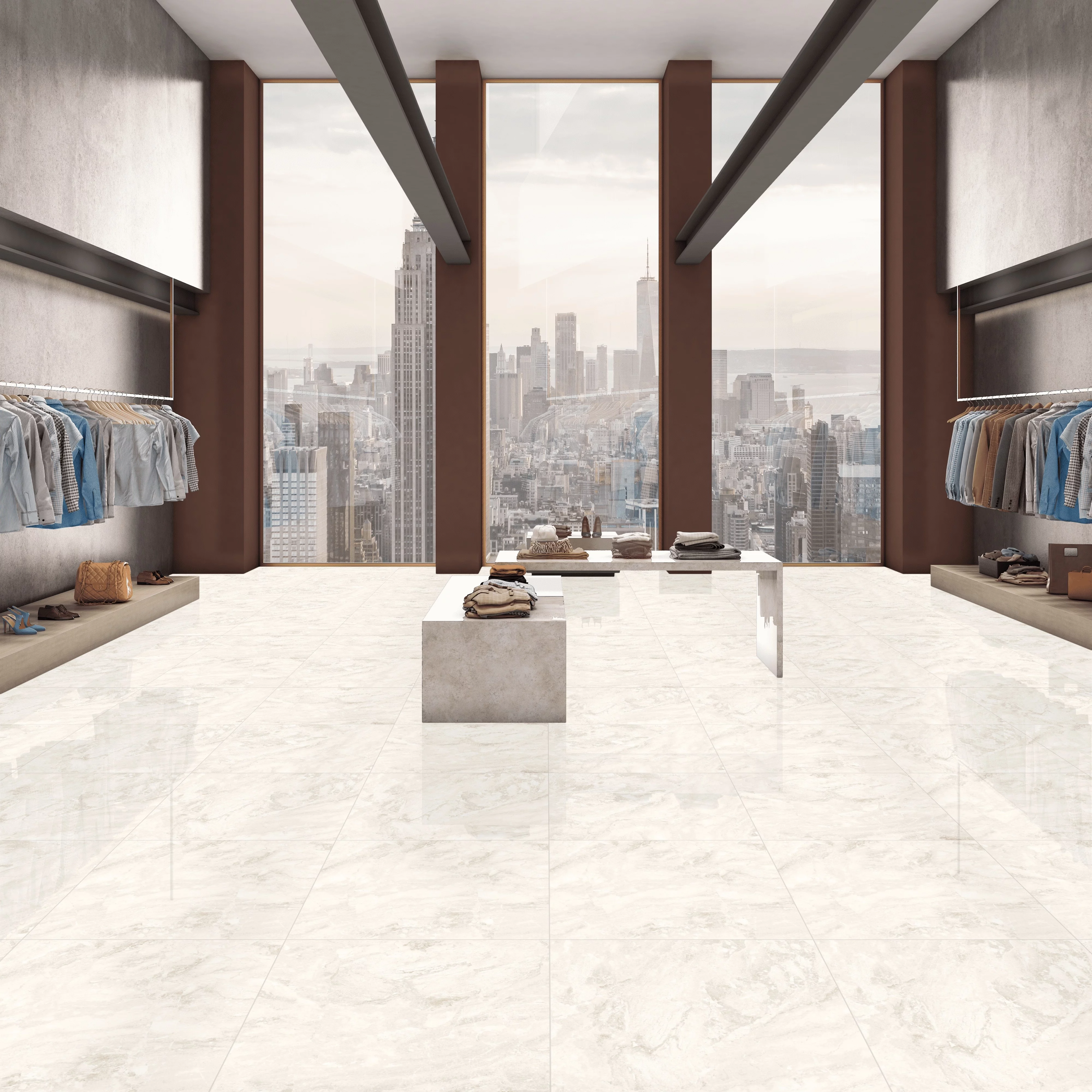 Dimensiunea de 60×60 cm și suprafața lucioasă oferă un efect vizual spectaculos, accentuând senzația de spațiu și luminozitate.