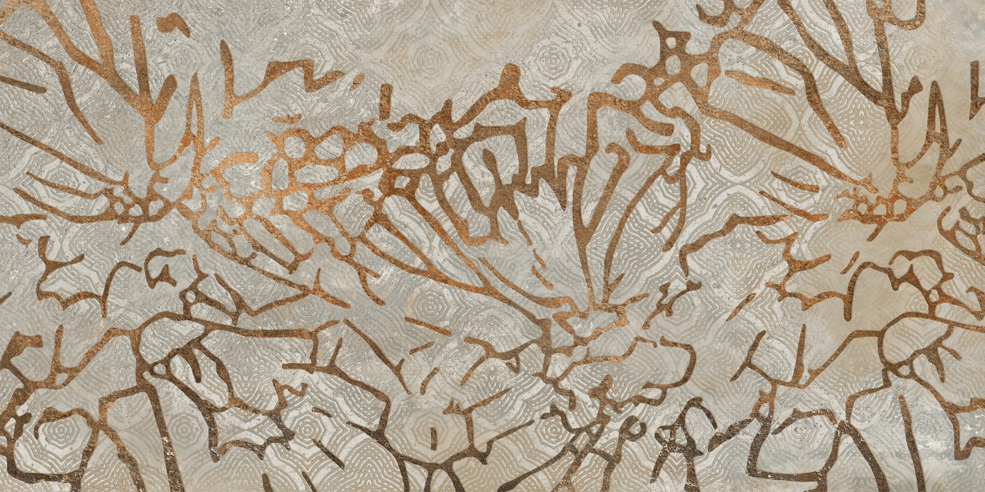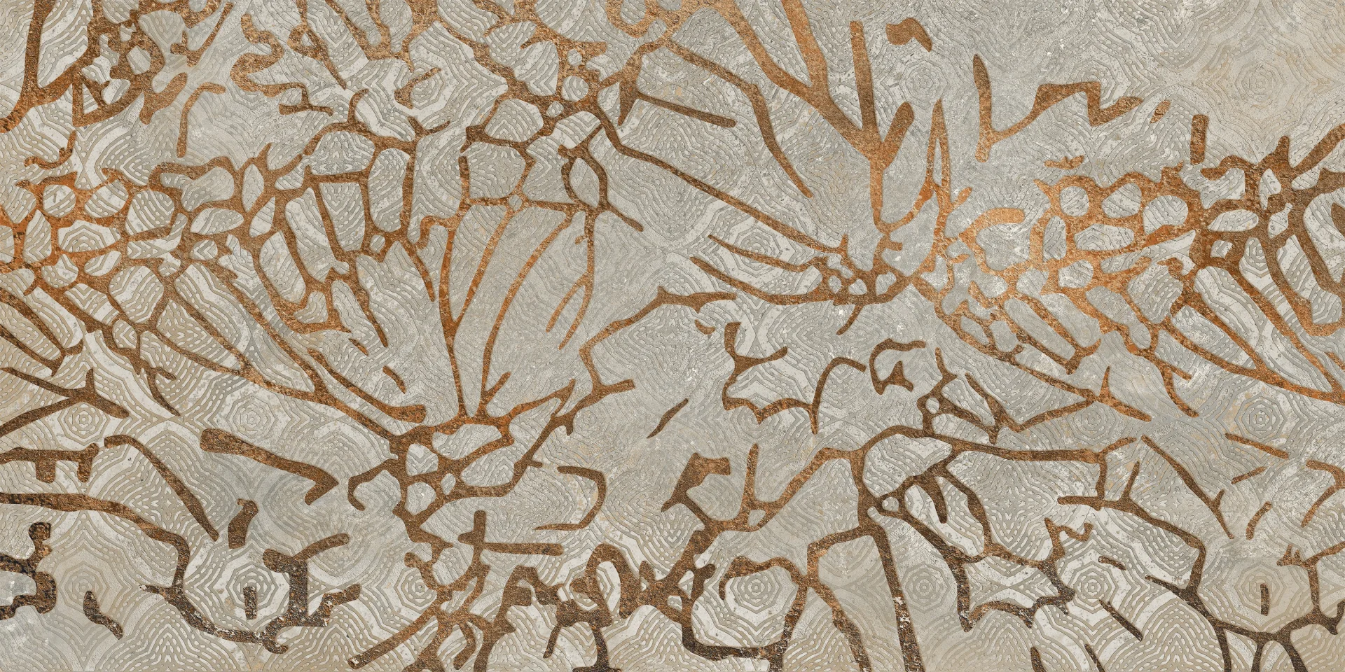 PLACA DECOR GOLDUST BROWN - 80X160 cm, portelanata, rectificata, design abstract cu efecte aurii pe fond gri, finisaj mat cu inserții lucioase, recomandată doar pentru placarea pereților.