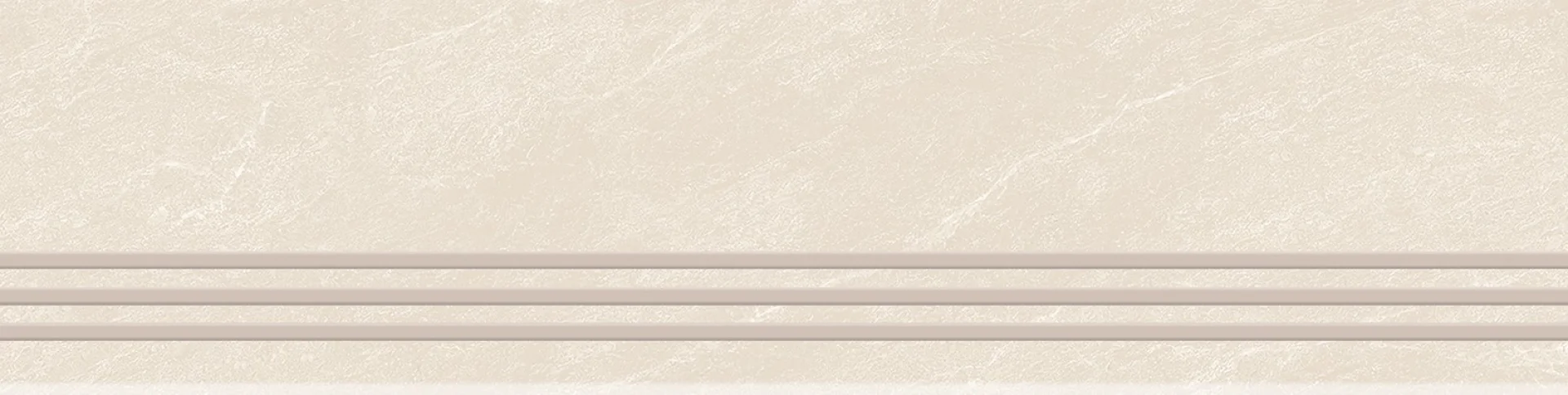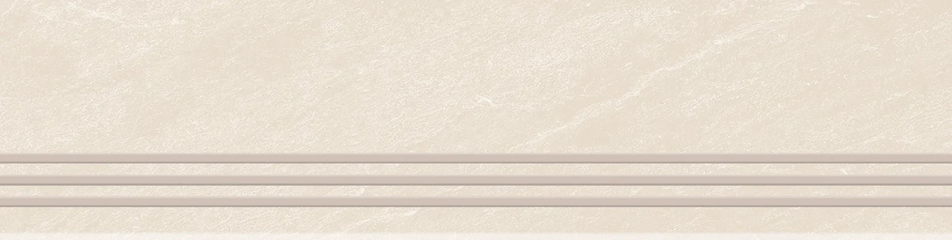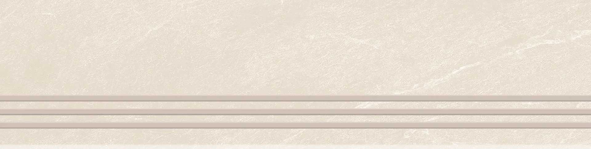TREAPTA GRESIE RIVERSTONE BIANCO GRANDE - 29.5X120 cm, portelanata, glazurata, în nuanțe deschise de alb-crem cu venaturi subtile bej-gri, finisaj mat și textură Rustic Punch, ideală pentru spații interioare și exterioare.