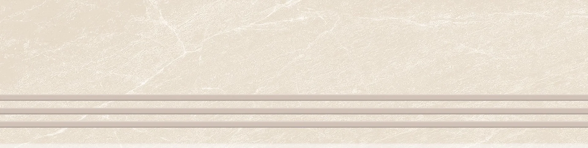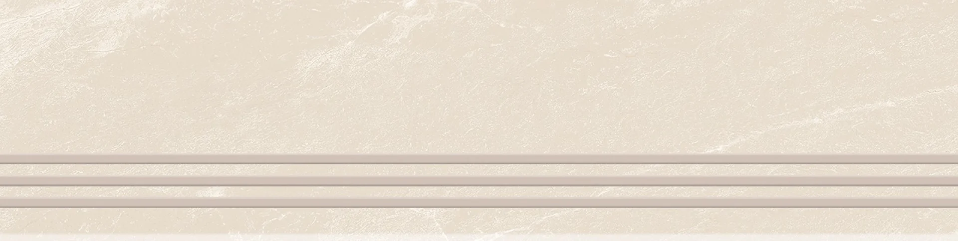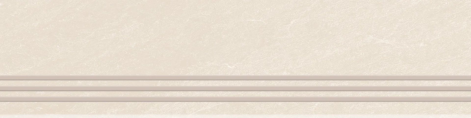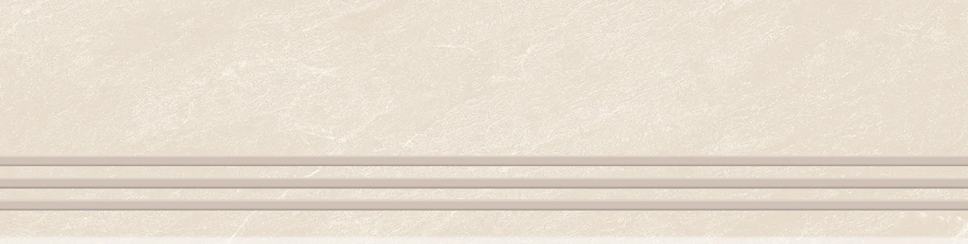 TREAPTA GRESIE RIVERSTONE BIANCO GRANDE - 29.5X120 cm, portelanata, glazurata, în nuanțe deschise de alb-crem cu venaturi subtile bej-gri, finisaj mat și textură Rustic Punch, ideală pentru spații interioare și exterioare.