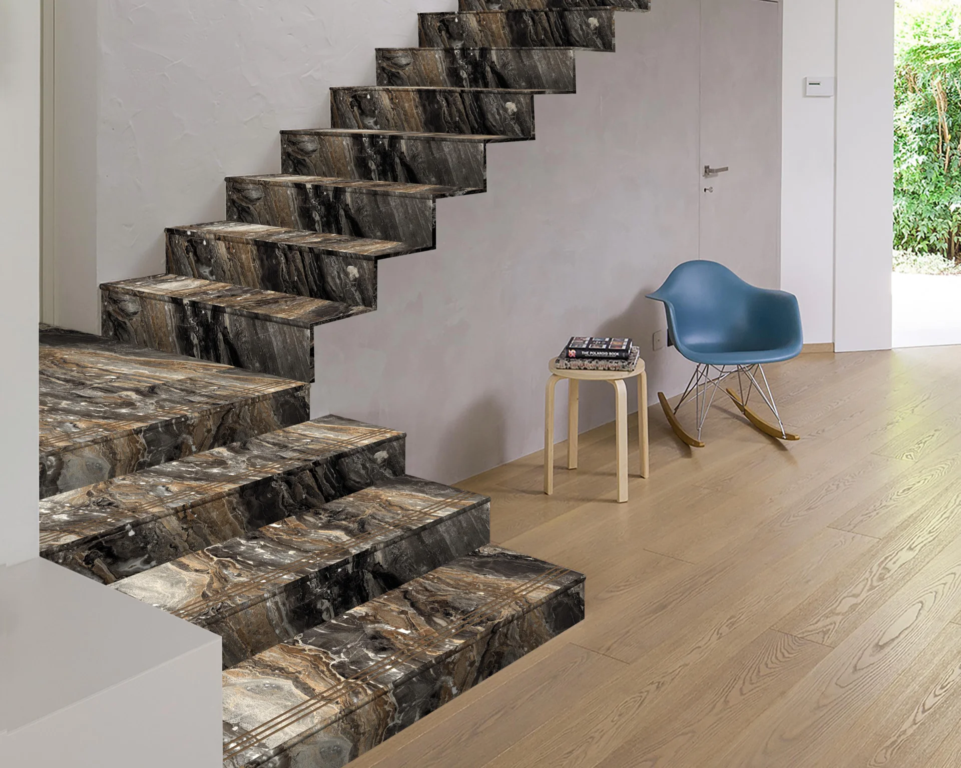 Contra treapta gresie, portelanata, 17X120 cm, DEEPER BROWN, aspect piatra naturala, maro cu negru, lucioasa, rectificata