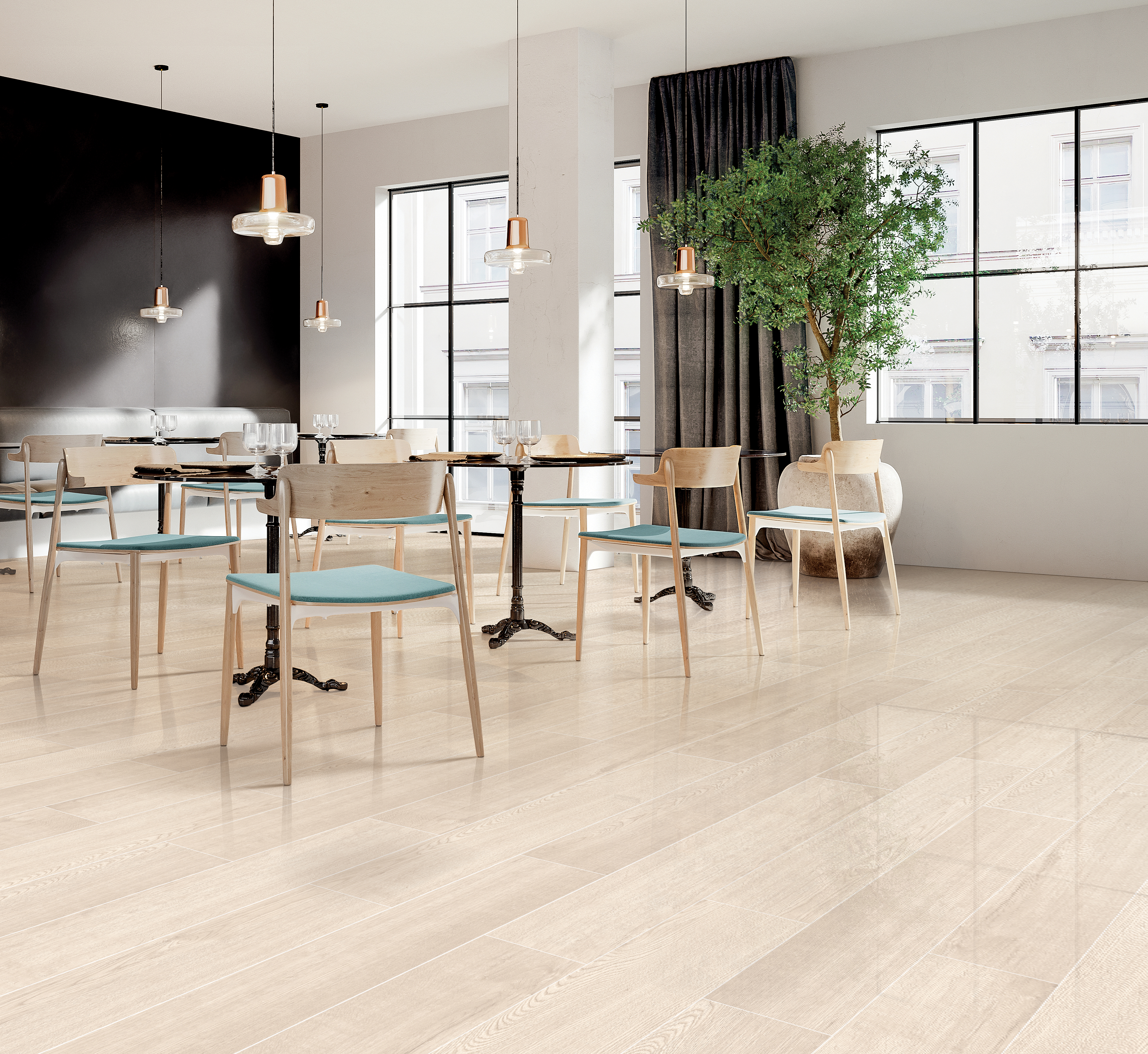 Este o alegere excelentă pentru livinguri, dormitoare sau spații comerciale unde se dorește un aspect de parchet cu avantajele gresiei porțelanate.