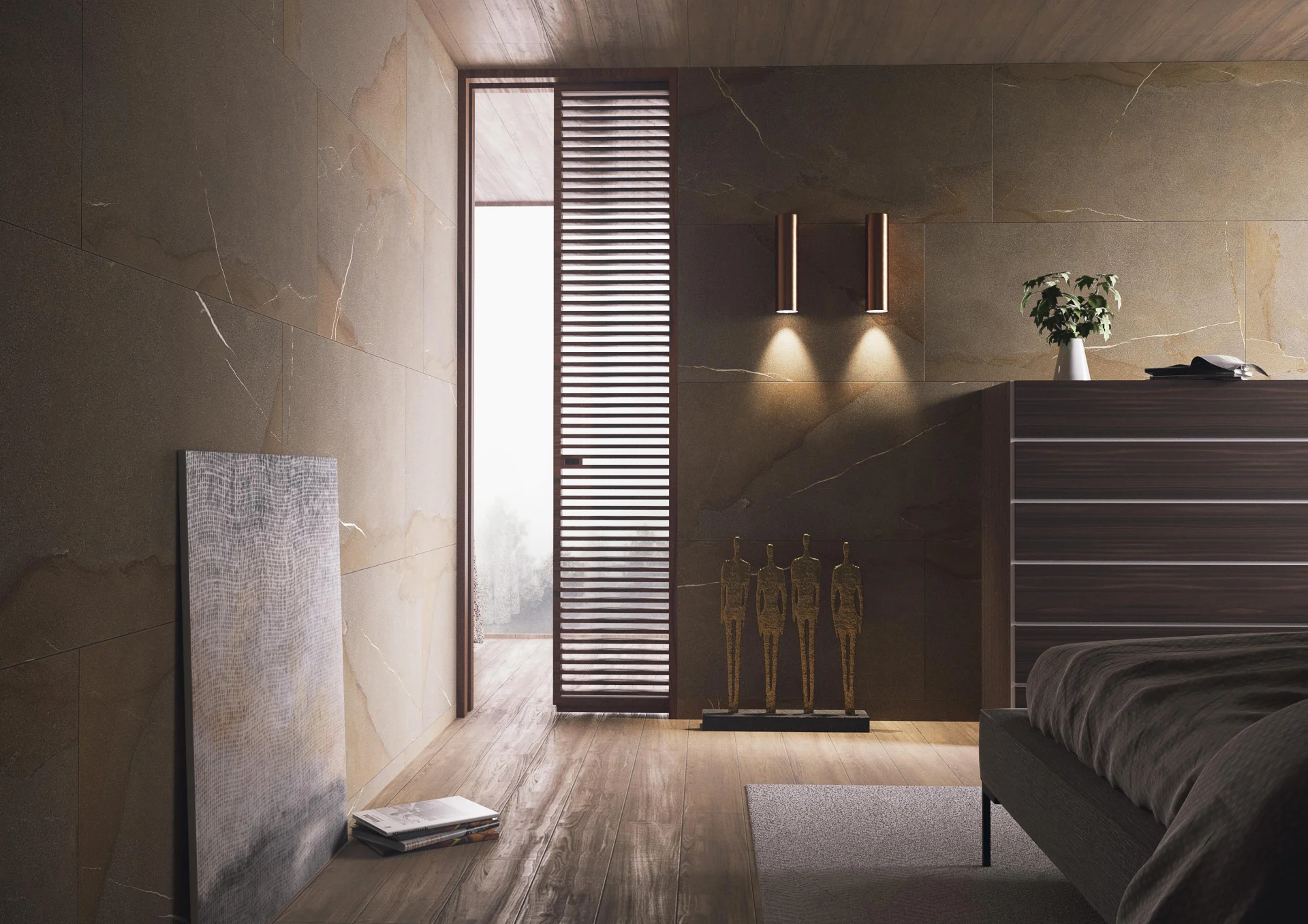 Gresia BROWN KOSMOS (SDX6444P) se remarcă prin tonurile calde de maro cu reflexii fine și vene discrete, ce reproduc fidel textura naturală a pietrei.