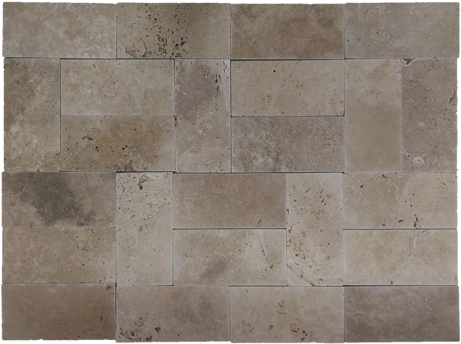 TRAVERTIN RUSTIC TUMBLED - 10X20.3X1.2 cm, cu suprafață nechituită și finisaj antichizat, ideal pentru placări naturale, rustice, atât în interior, cât și în exterior.