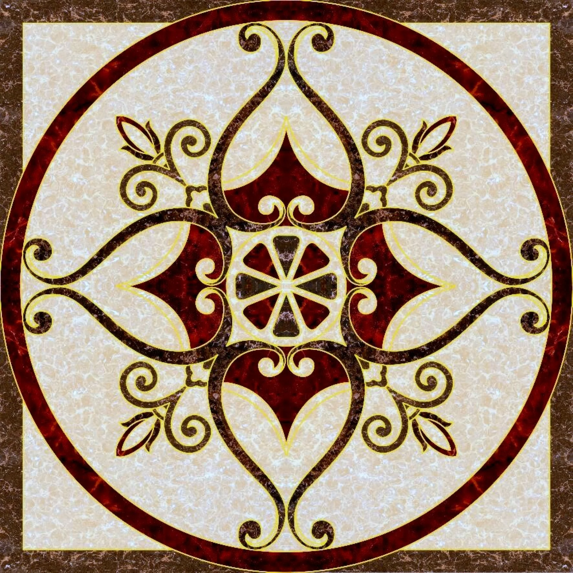 COVOR CERAMIC FC-66PHP14-2109 (4 PLACI) - 120X120 cm, design simetric floral cu accente în roșu granit și bej, realizat din 4 plăci portelanate glazurate.