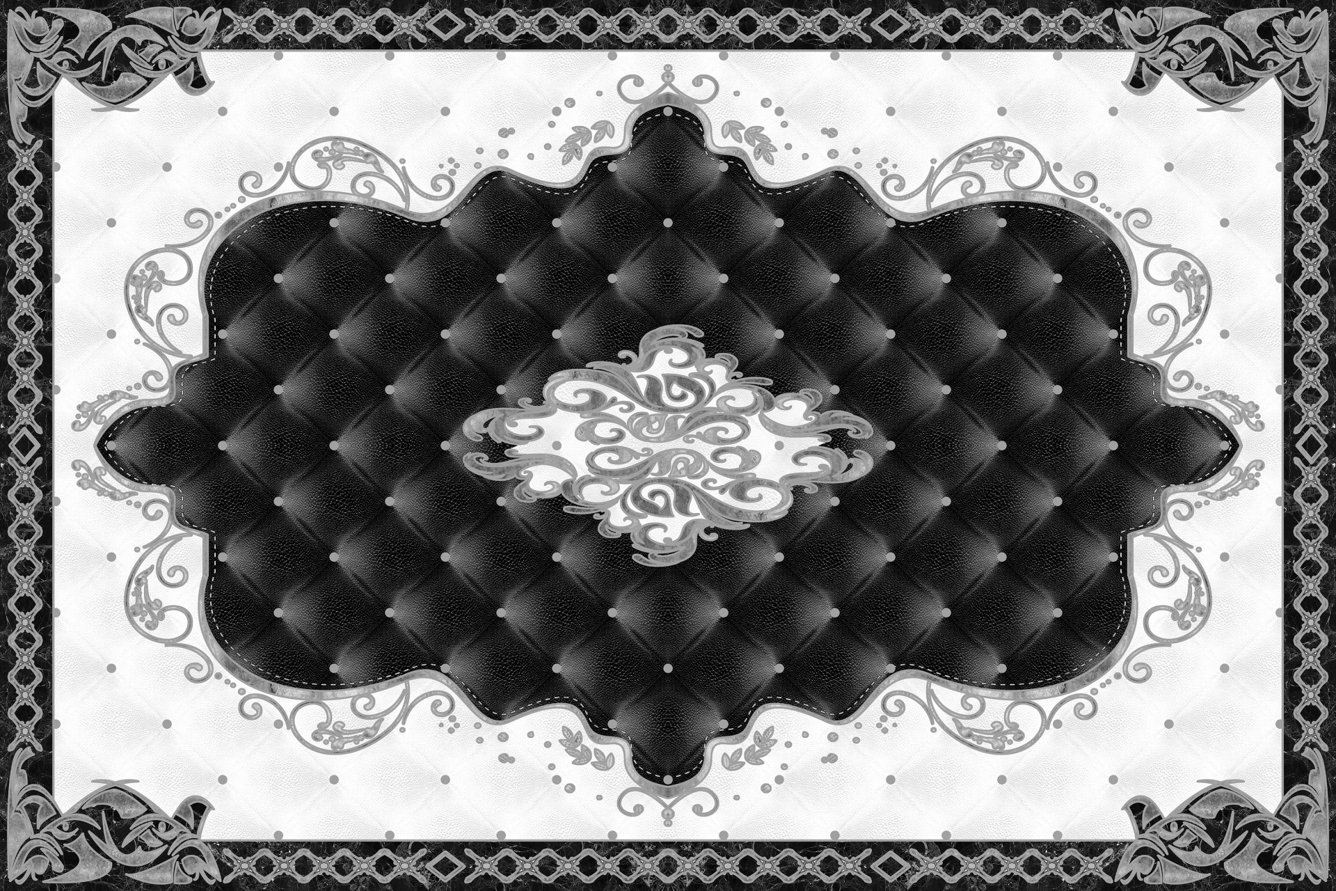 Covorul ceramic B11171 se remarcă prin designul său sofisticat care imită un finisaj tapițat de piele, în nuanțe intense de negru și alb.