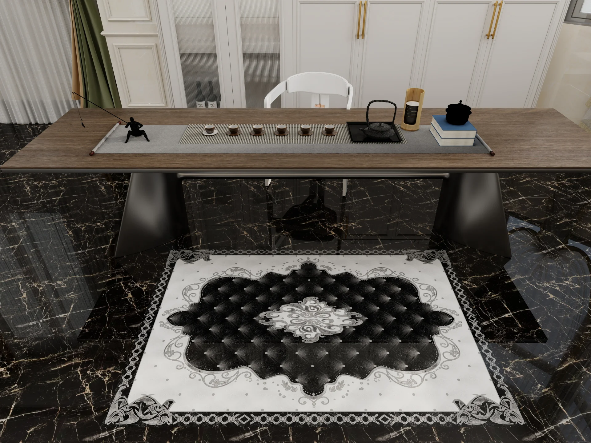 Realizat din 6 plăci portelanate glazurate de dimensiuni egale, acest covor are un impact vizual impresionant, fiind ideal pentru a evidenția o zonă de dining, living sau un spațiu comercial cu accente luxoase.