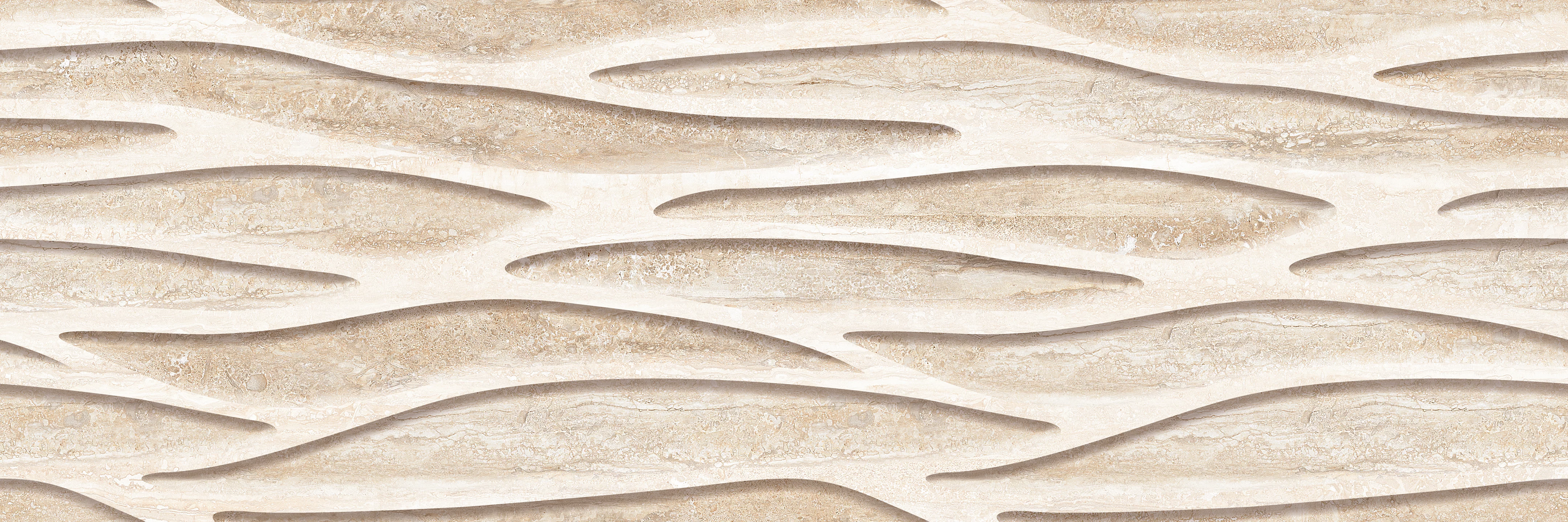 FAIANTA AC-12353 HL3 - 25X75 cm, ceramica glazurata, rectificata, lucioasa, cu model ondulat în relief, efect travertin bej, accent sofisticat pentru spații interioare elegante.