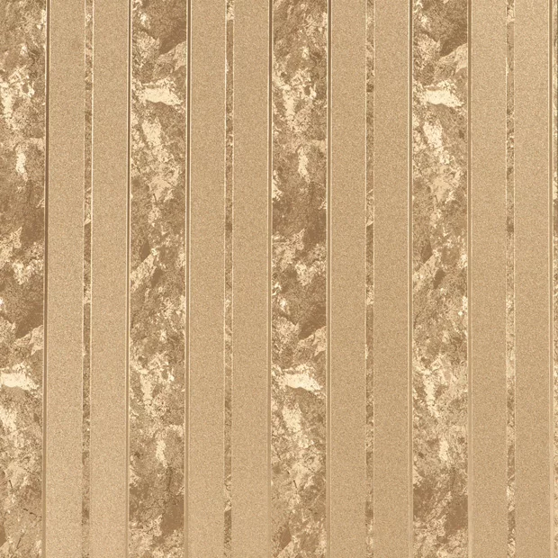 Tapetul GOLD OPULENCE G1-914-01 impresionează printr-un design geometric contemporan, inspirat de textura pietrei naturale și jocuri verticale de linii aurii satinate.