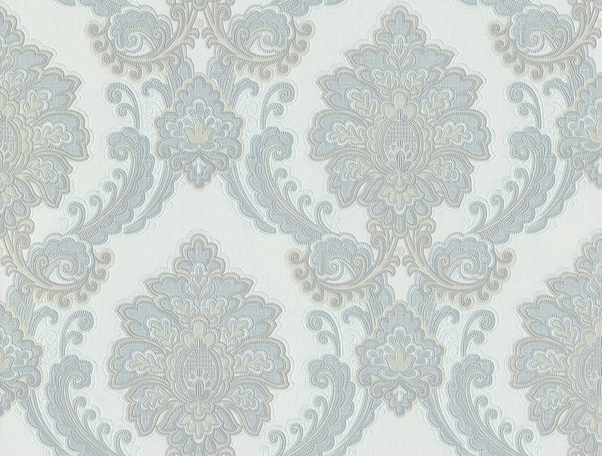 Tapet SYLVIA 826102 – 70x1000 cm (7 m²/ rola), PVC, lavabil, model floral baroc elegant, în nuanțe de crem și bej.
