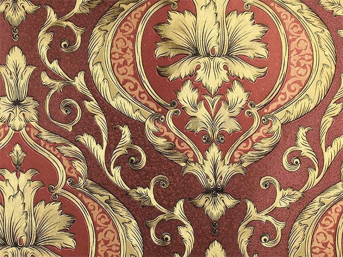 Tapetul GOLDEN 66330 se remarcă prin designul său clasic baroc, în nuanțe de vișiniu intens și auriu antic.