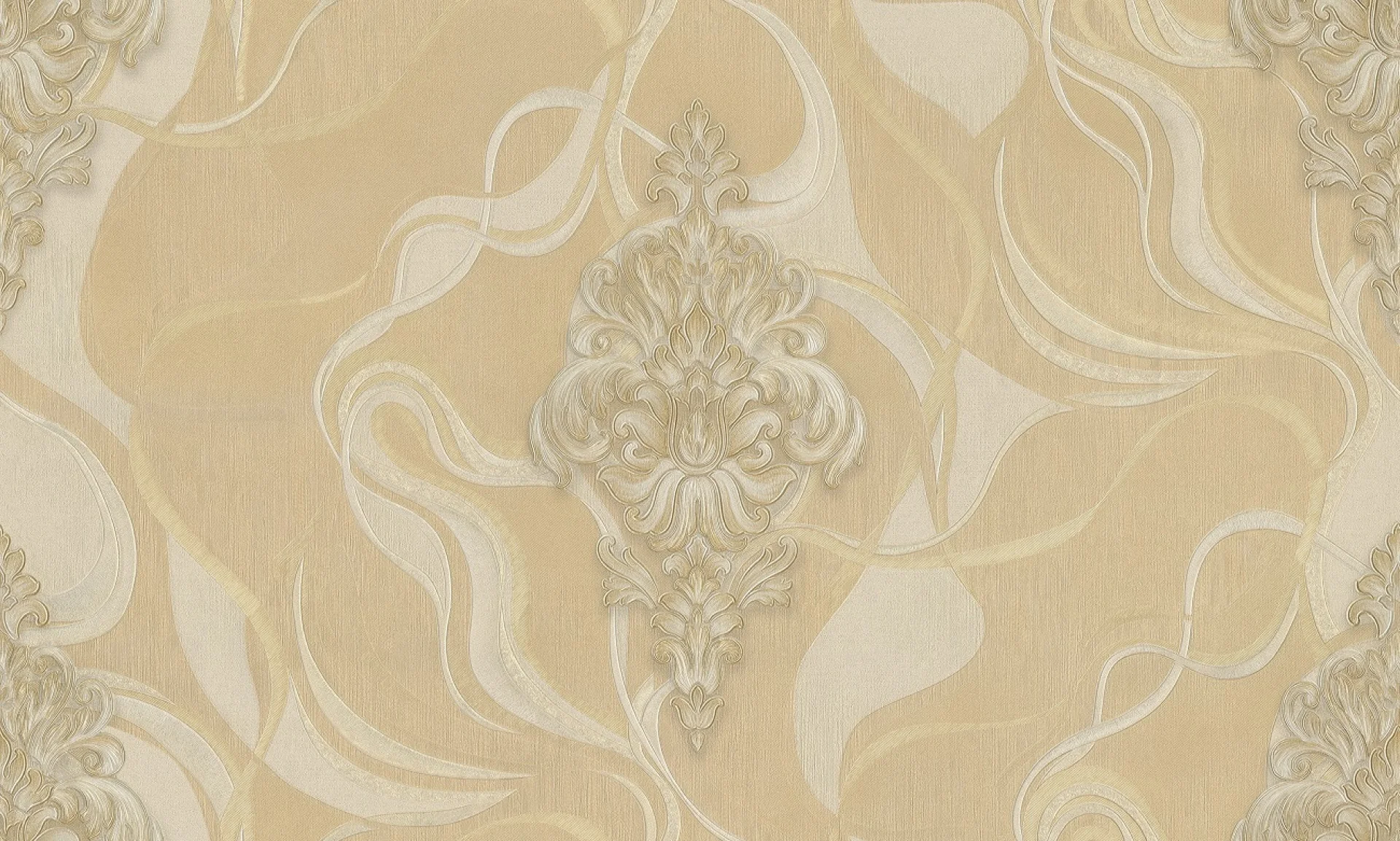 Combină eleganța clasică a unui ornament baroc central cu un fundal fluid, modern, în nuanțe calde de bej și crem sidefat. Detaliile în relief, realizate cu finețe, evidențiază modelul ornamental central într-o nuanță deschisă, perlată, care adaugă rafinament și lumină ambientului.