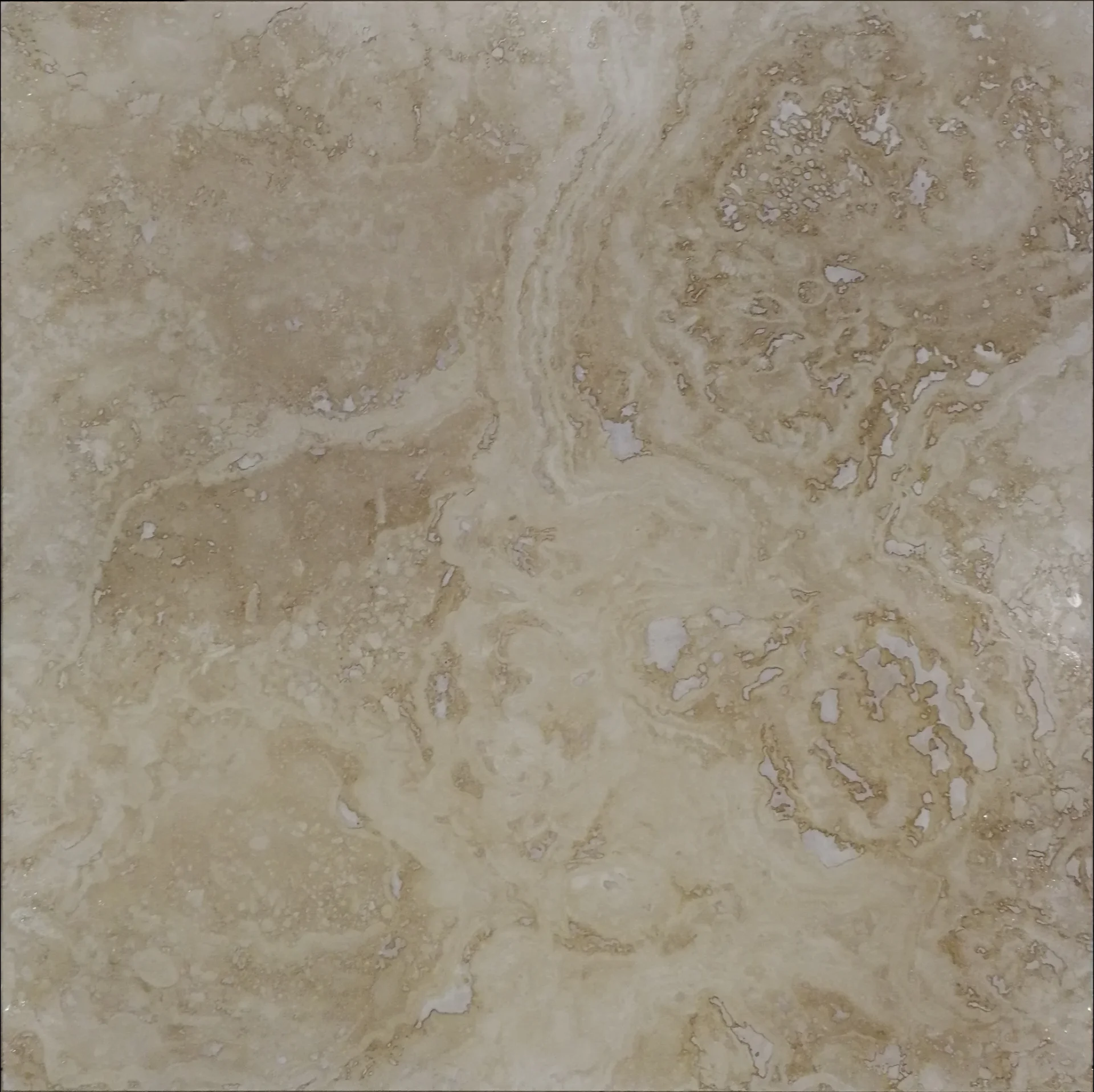 TRAVERTIN LIGHT MEDIUM CROSS CUT - 61X61X1.2 cm, finisaj mat (honed) și chituit, cu texturi dinamice și un joc natural de nuanțe crem-bej deschis, ideală pentru interioare moderne și elegante.