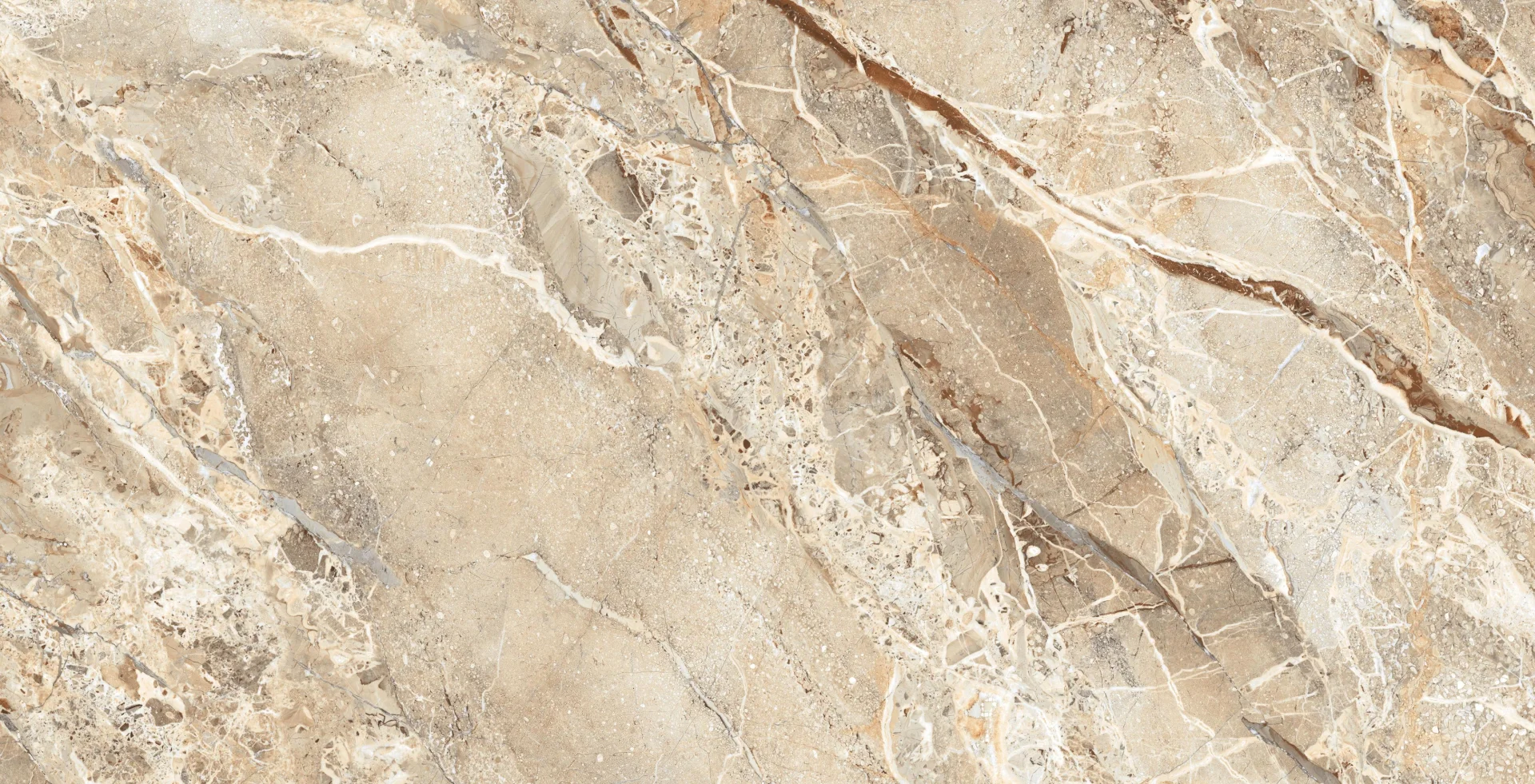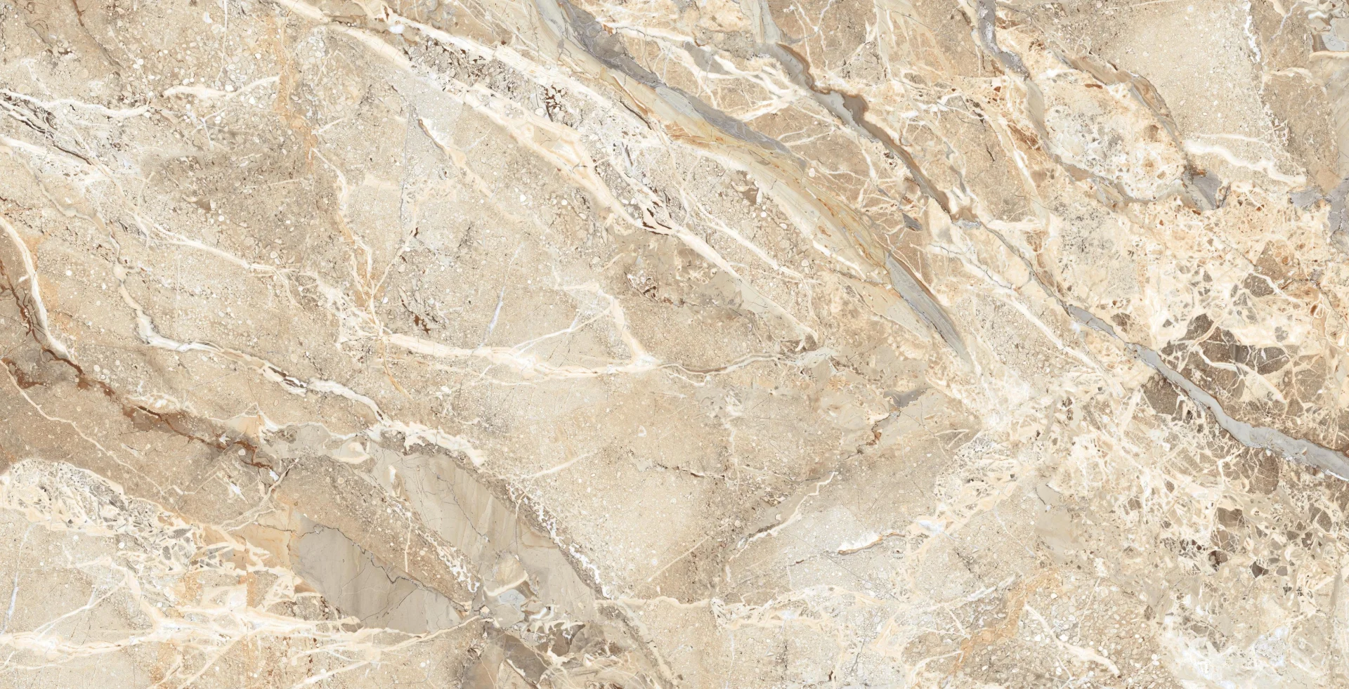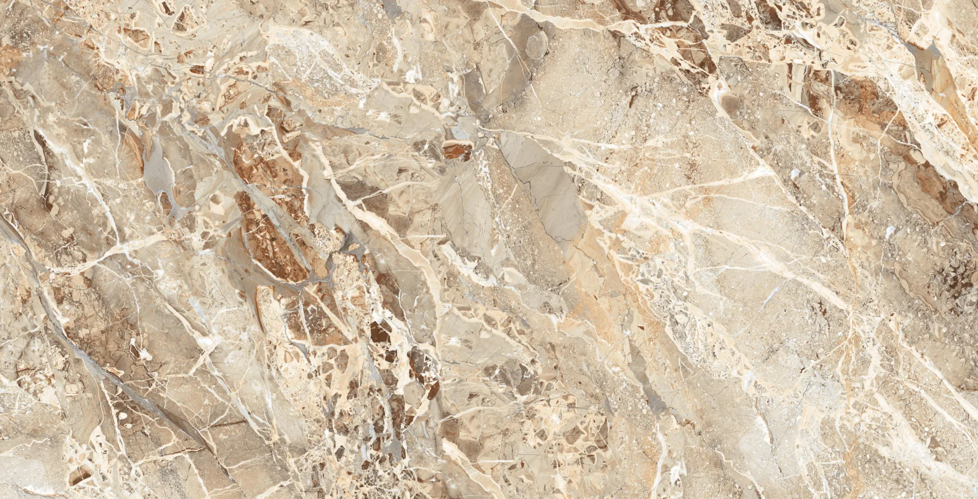 GRESIE BRECCIA SUPERB - 80X160 cm, porțelanată, în nuanțe de bej și crem cu vene albe și accente naturale, aspect de marmură lucioasă, ideală pentru interioare și exterioare elegante.