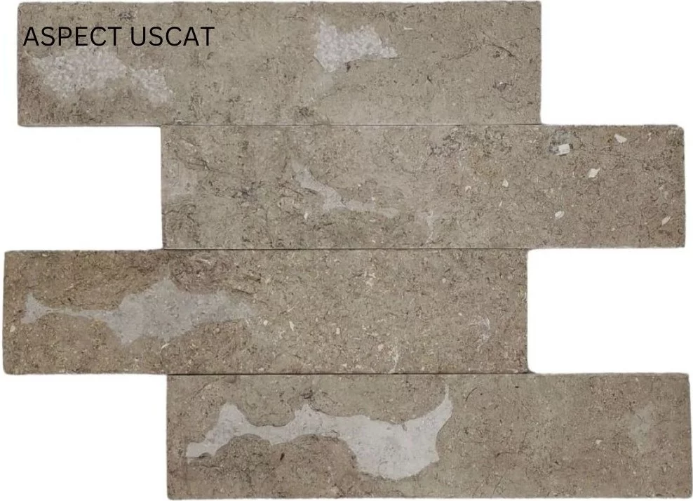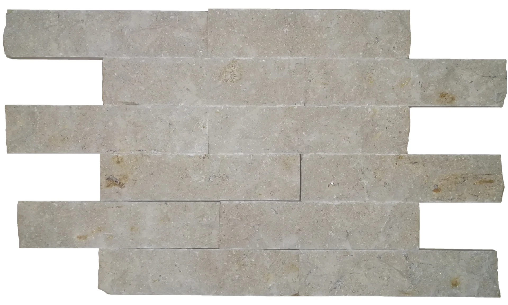 PIATRA NATURALA SINAI PEARL (LA PALET) - 7X30X1.2 cm, finisaj scapitat, nuanță caldă de bej-gri perlat, livrate la palet, ideală pentru placări interioare și exterioare.