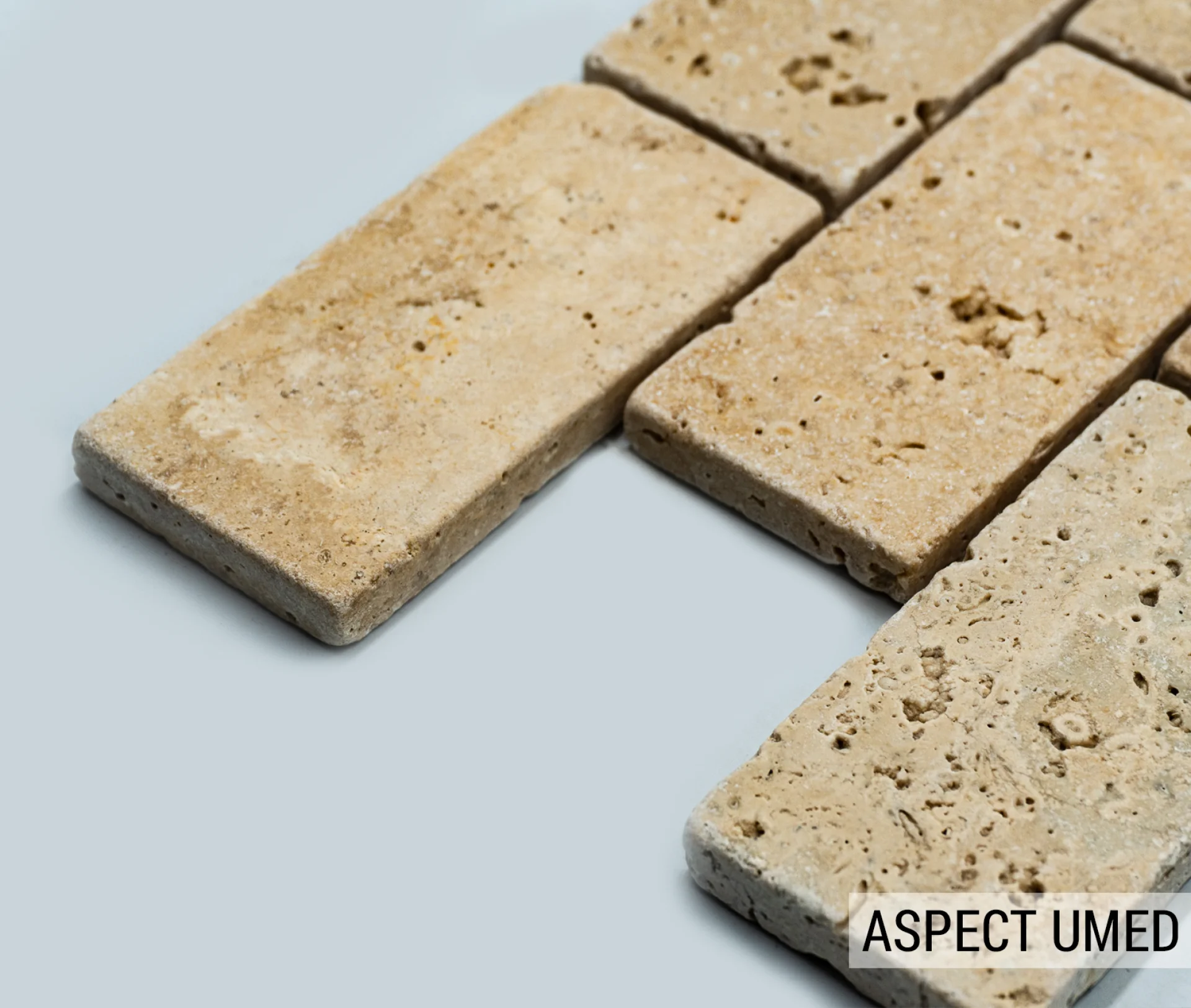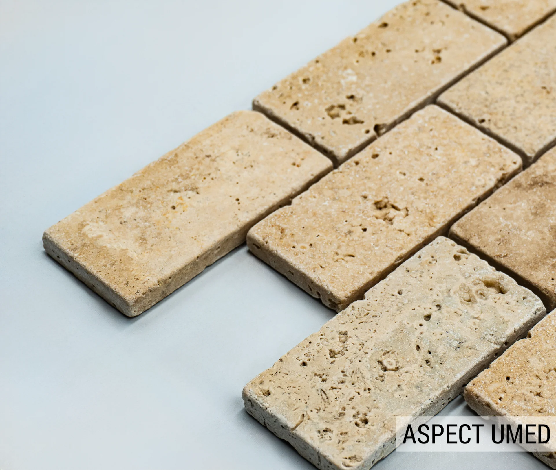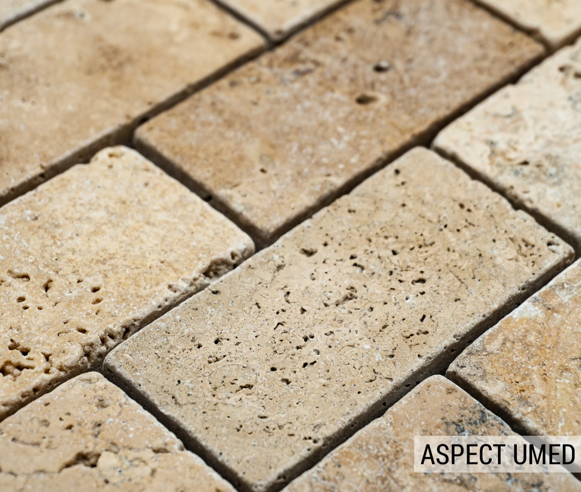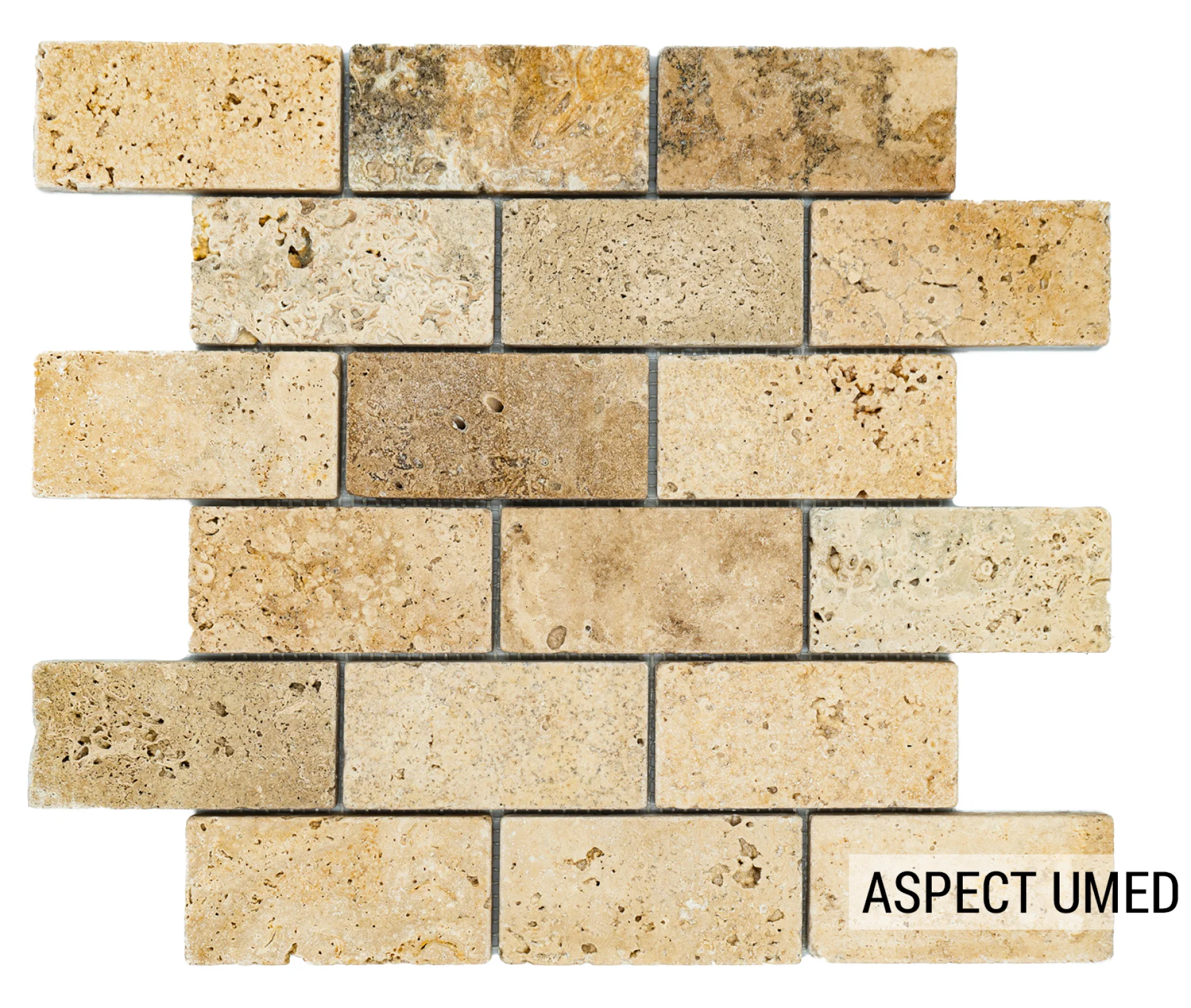 MOZAIC PE PLASA DIN TRAVERTIN ANTICHIZAT, DIMENSIUNE BUCATI DE 4.8X10 CM, GROSIME 1 CM