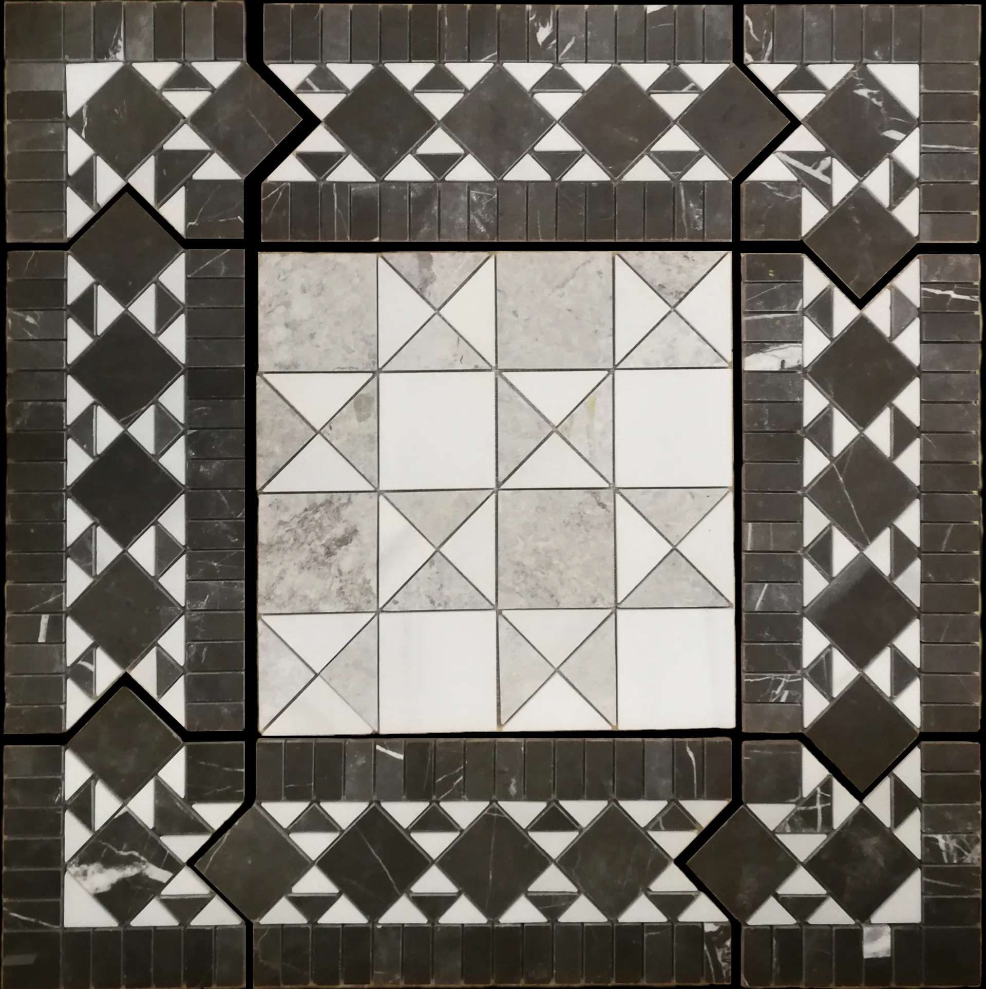 MEDALION MOZAIC MARMURA FANTASY - 72X72 cm, grosime 1 cm, element decorativ sofisticat, cu suprafață lucioasă și design geometric elegant, ideal pentru interioare rafinate.