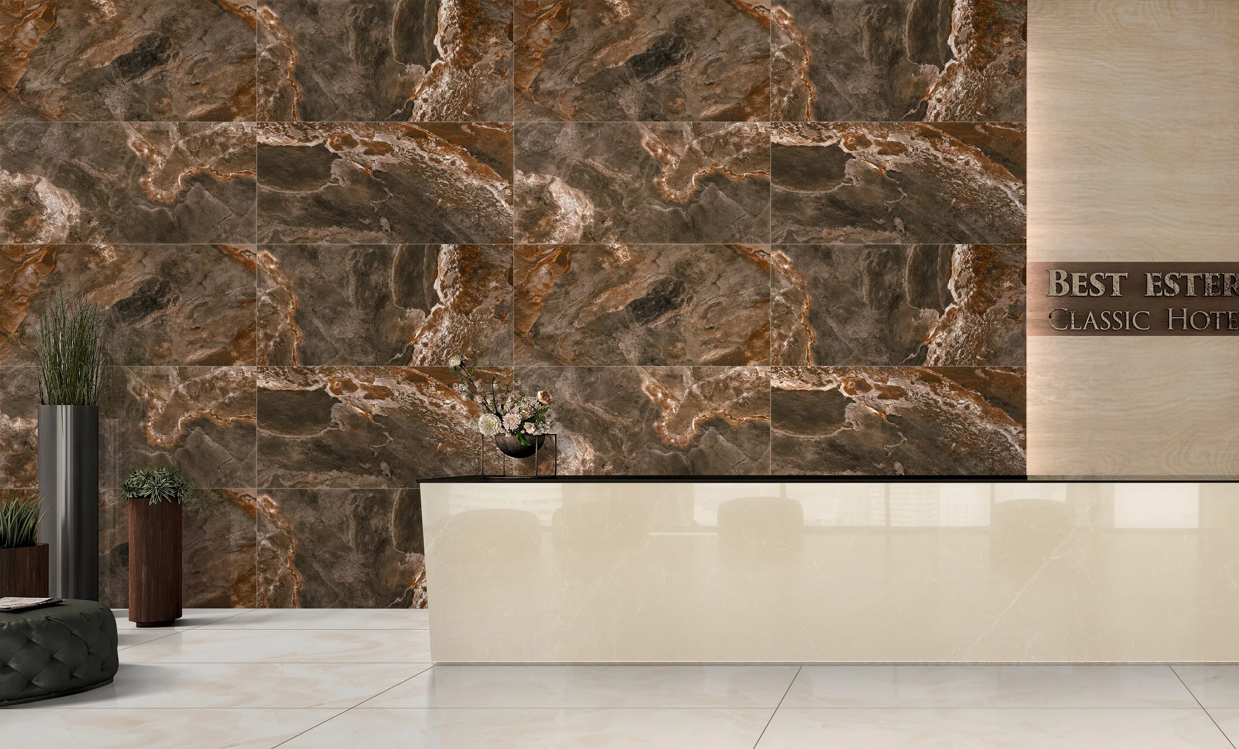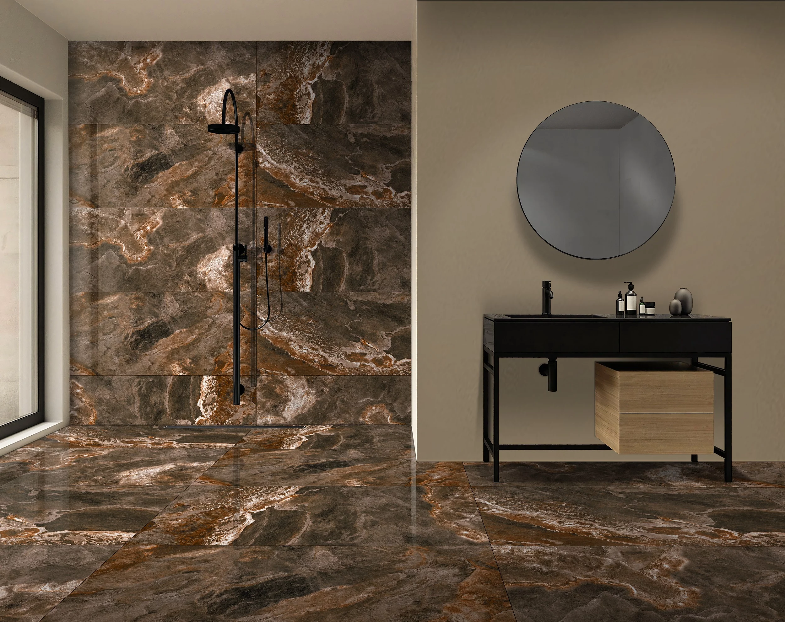 Gresia ROCK STONE BROWN aduce eleganța brută a pietrei naturale direct în proiectele tale de design.