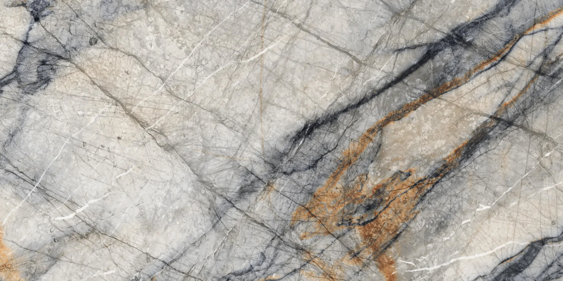 • Aspect: marmură exotică alb-gri cu vene portocalii și negre