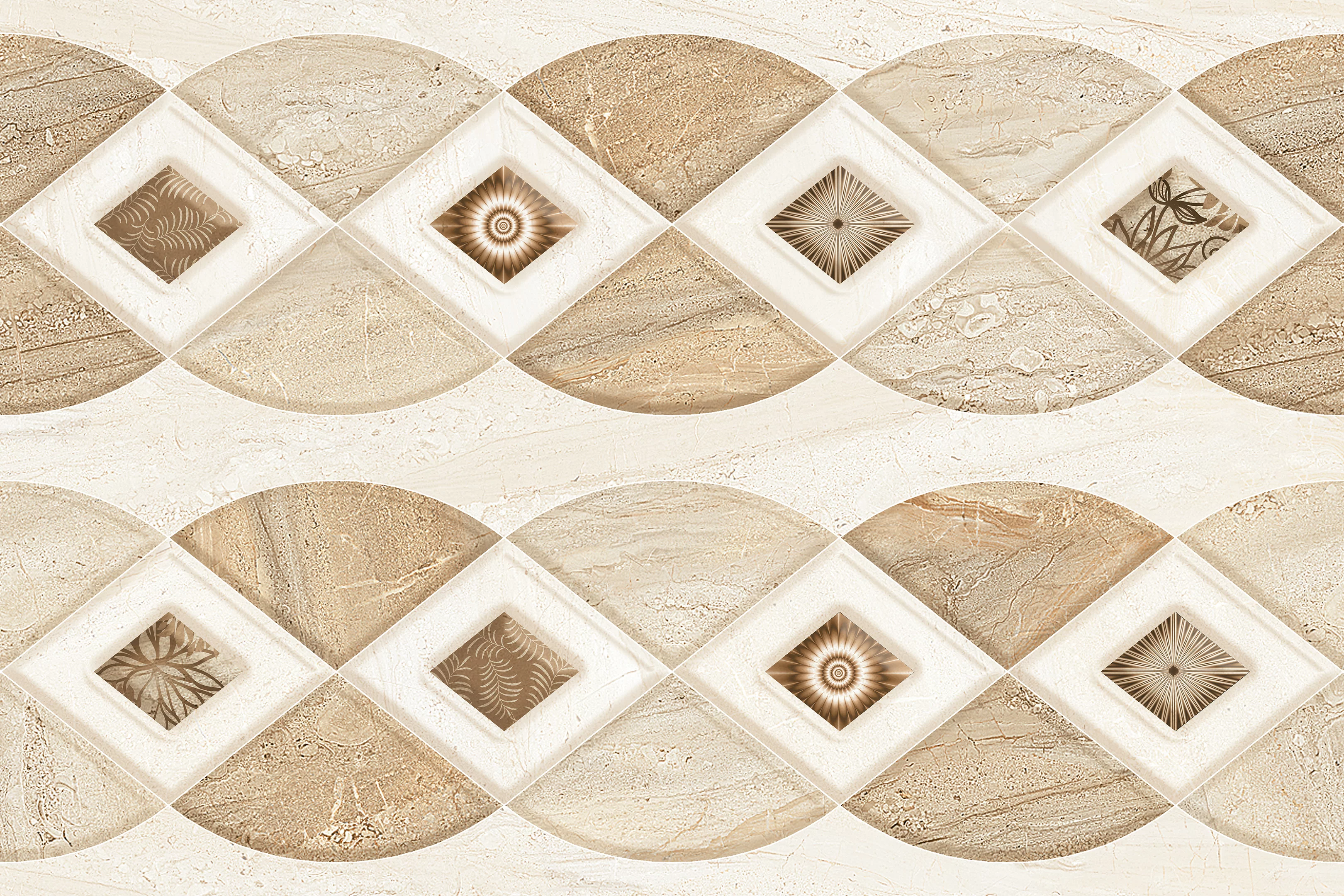 Designul cu forme geometrice și accente reliefate într-o paletă caldă de bej și crem oferă dinamism și personalitate pereților. Ideală pentru completarea plăcilor de bază din colecția Infinity, această faianță decorativă aduce contrast și textură într-un mod subtil și sofisticat.