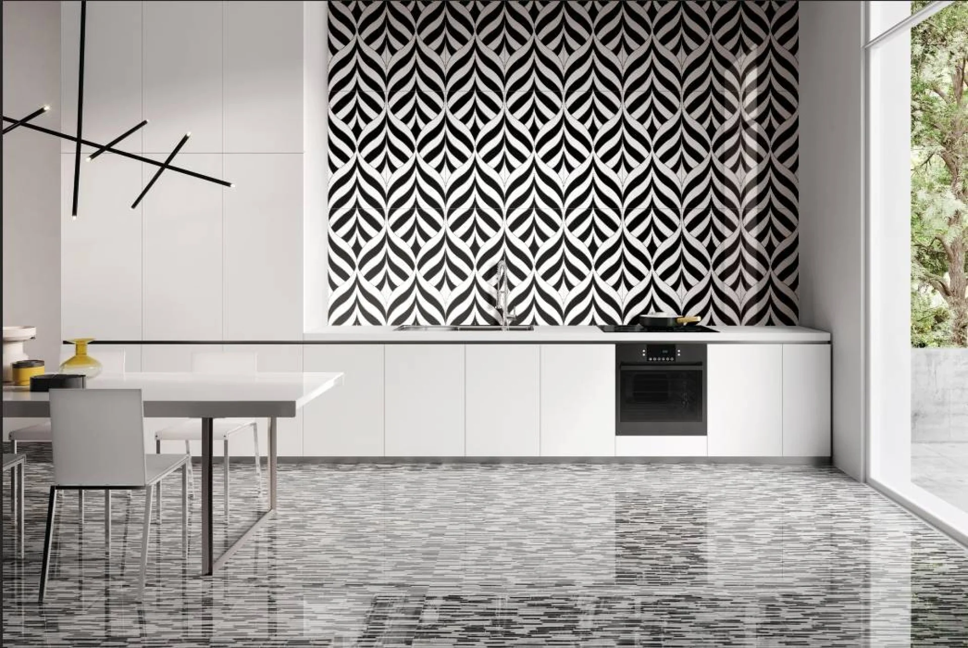• Contrast vizual puternic – ideal pentru spații moderne sau art deco