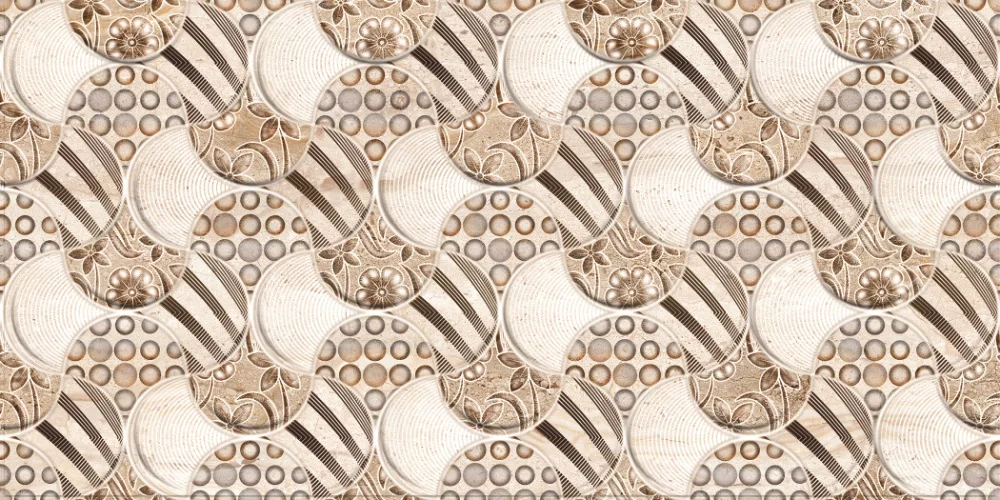 Faianta ANGELO BEIGE HL aduce o combinație rafinată de modele geometrice și motive florale în tonuri calde de bej, crem și maro.
