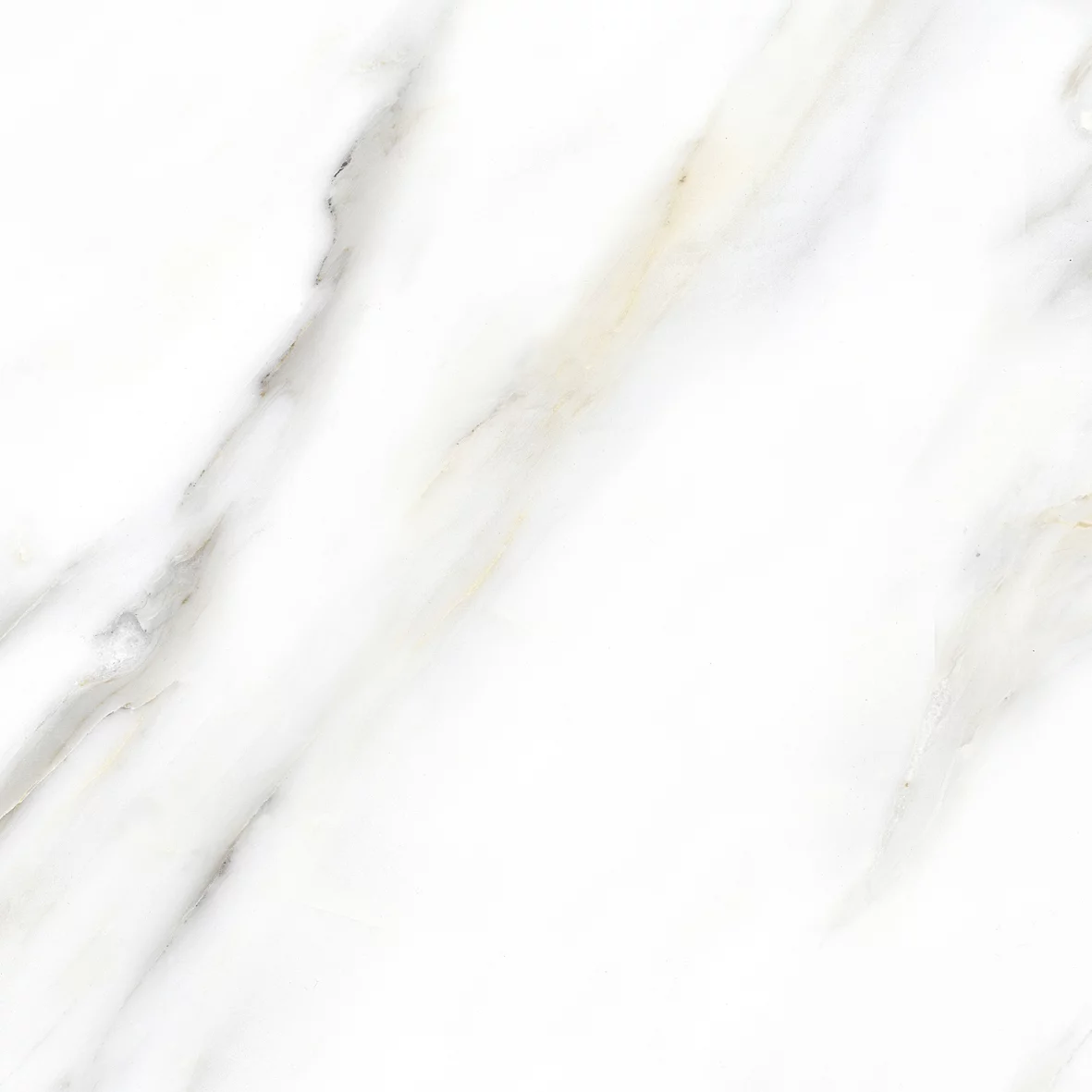 Gresia WHITE MARBLE T6042F este o placă ceramică glazurată cu aspect de marmură albă, având vinișoare fine gri-bej pe fundal alb, într-un finisaj mat elegant.