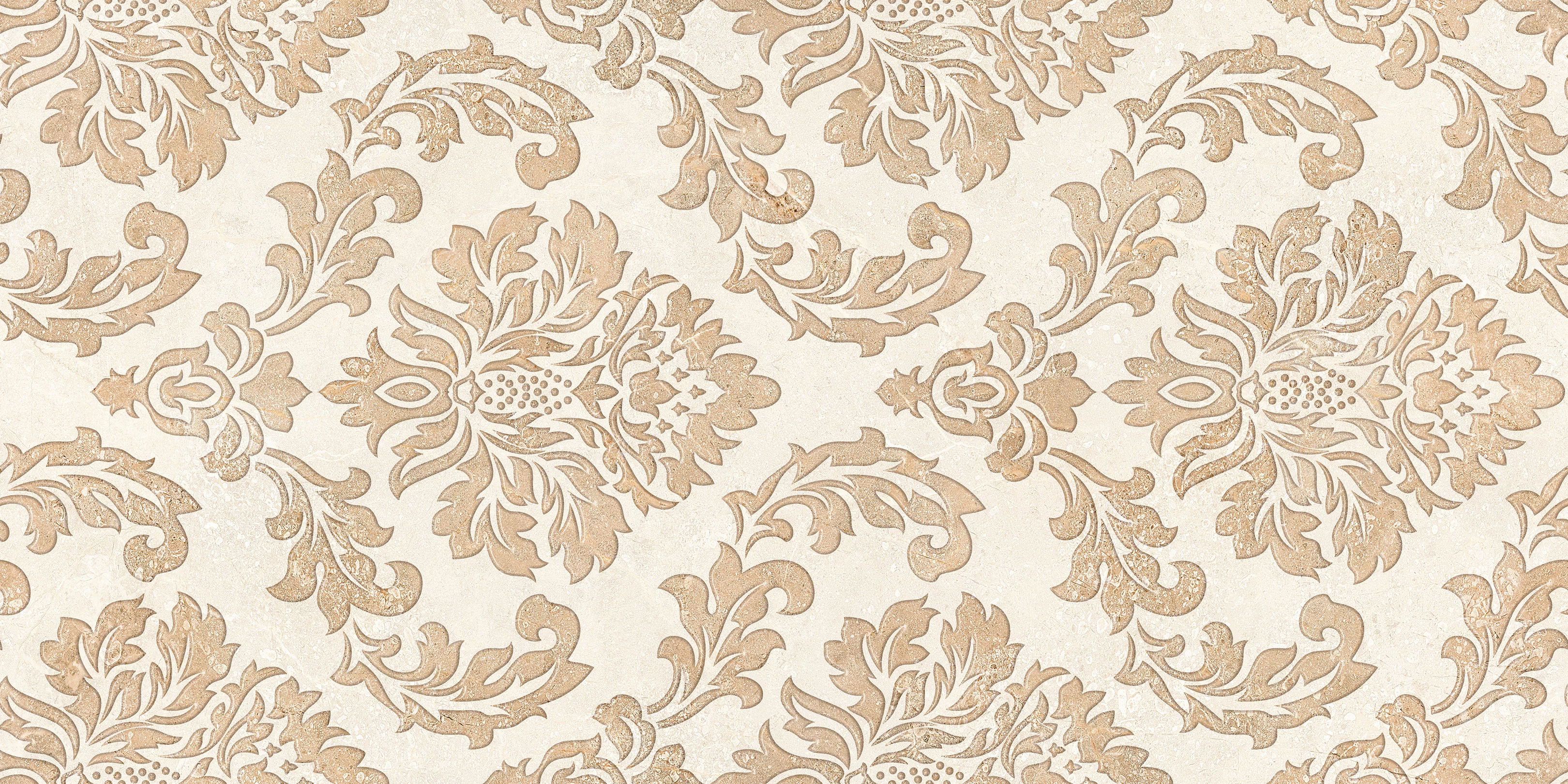 FAIANTA EX 80052 HL5 LARA - 30X60 cm, ceramica glazurata, lucioasa, rectificata, cu detalii damask in relief, model clasic ornamental în nuanțe crem și bej, pentru interioare elegante.