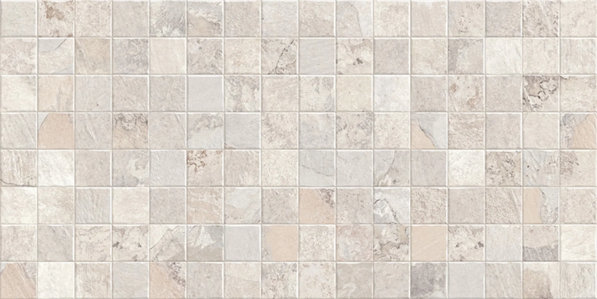 Faianta G EPIROS BIANCO HL se remarcă printr-un design elegant tip mozaic format din pătrățele fine, cu texturi inspirate din piatră naturală.