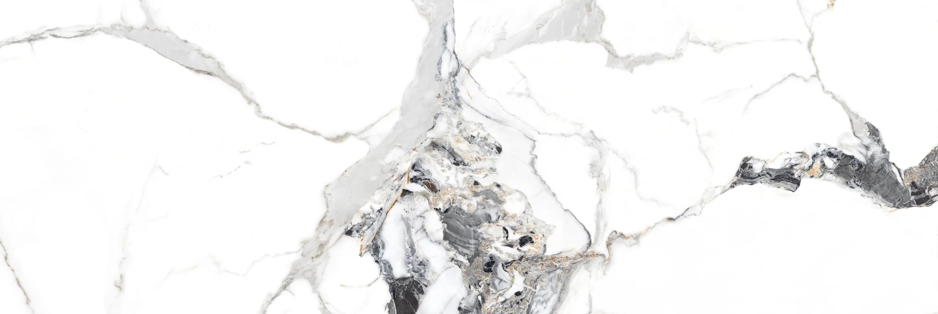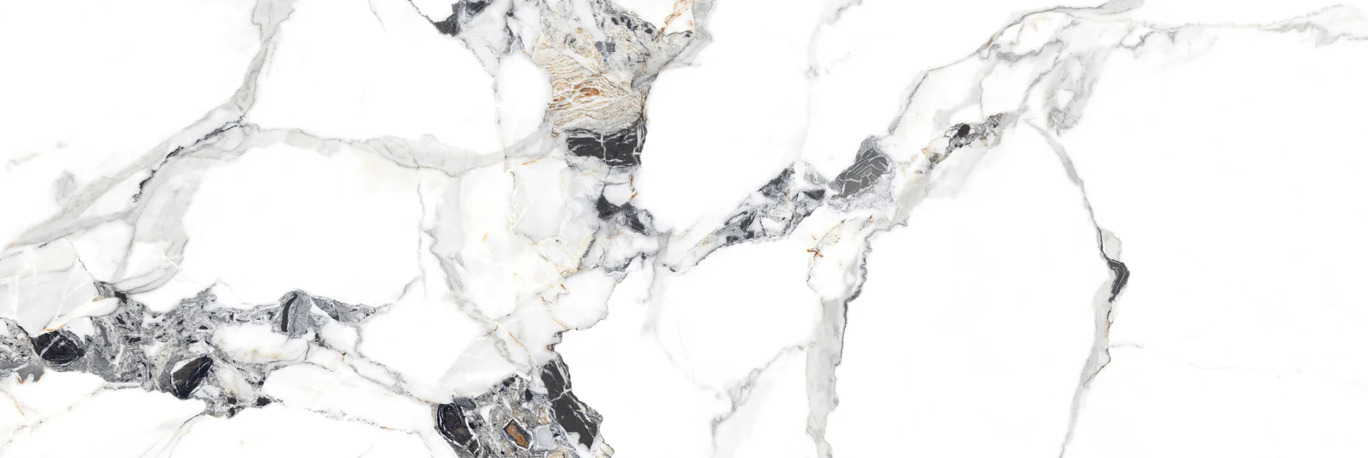 Placa are un fond alb imaculat, traversat de inserții și venaturi negre spectaculoase, care conferă un efect vizual de lux și rafinament.