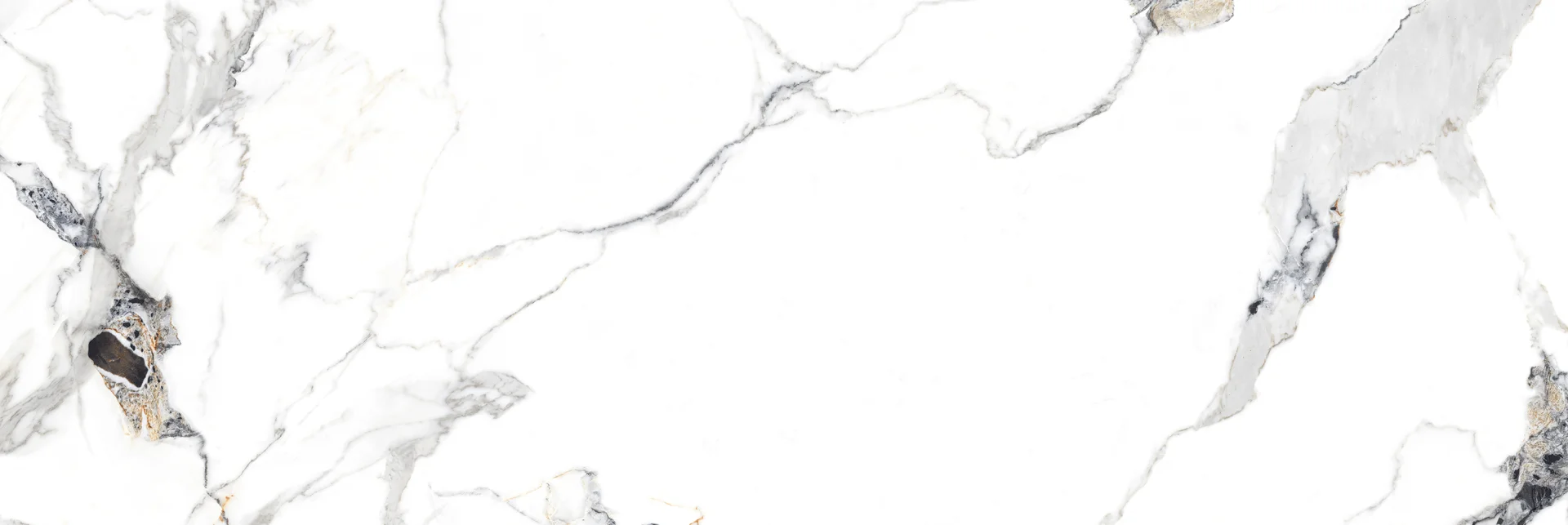 GRESIE MEDECIA MARBLE - 60X180 cm, porțelanată, alb cu inserții negre, lucioasă, rectificată, pentru interior și exterior, compatibilă cu încălzirea în pardoseală.