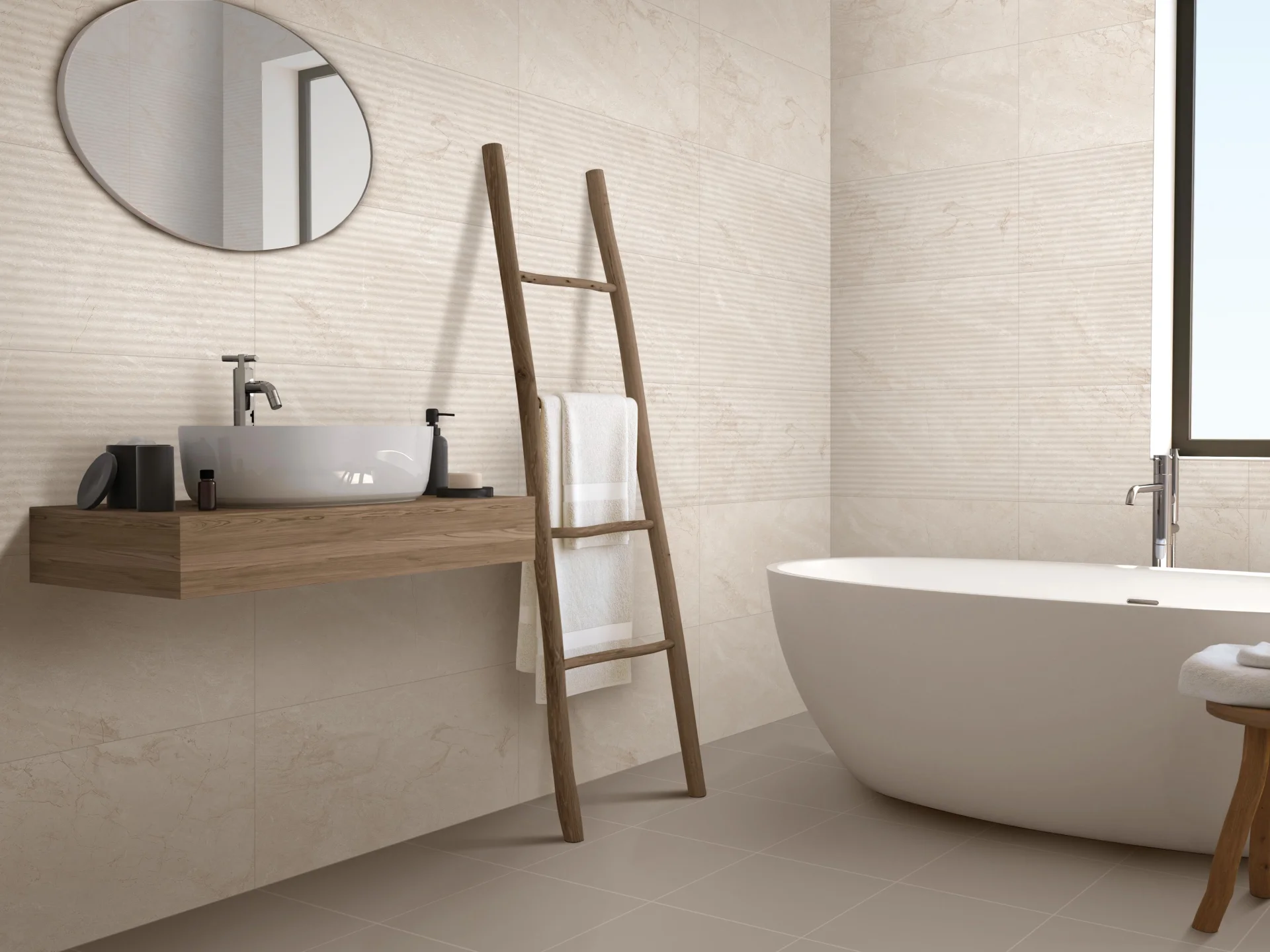 Tonul bej deschis, cu venaturi subtile și naturale, aduce lumină și spațialitate în orice ambient.