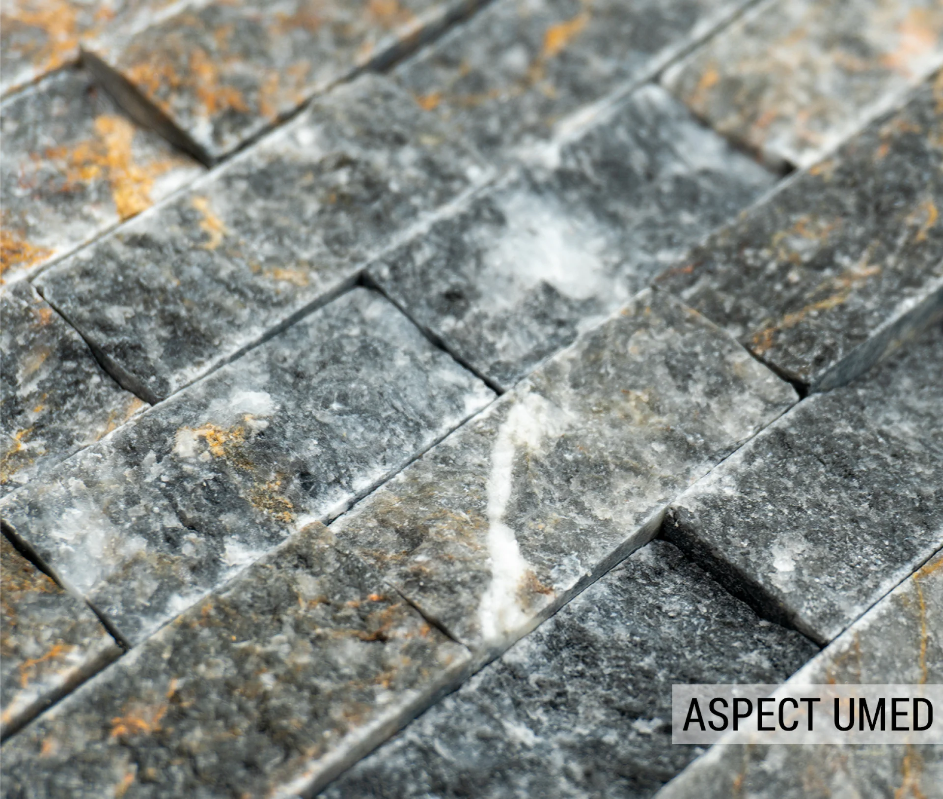 Montat pe plasă pentru aplicare ușoară, acest mozaic este ideal pentru proiecte cu stil rustic, industrial sau contemporan, atât în interior cât și în exterior.