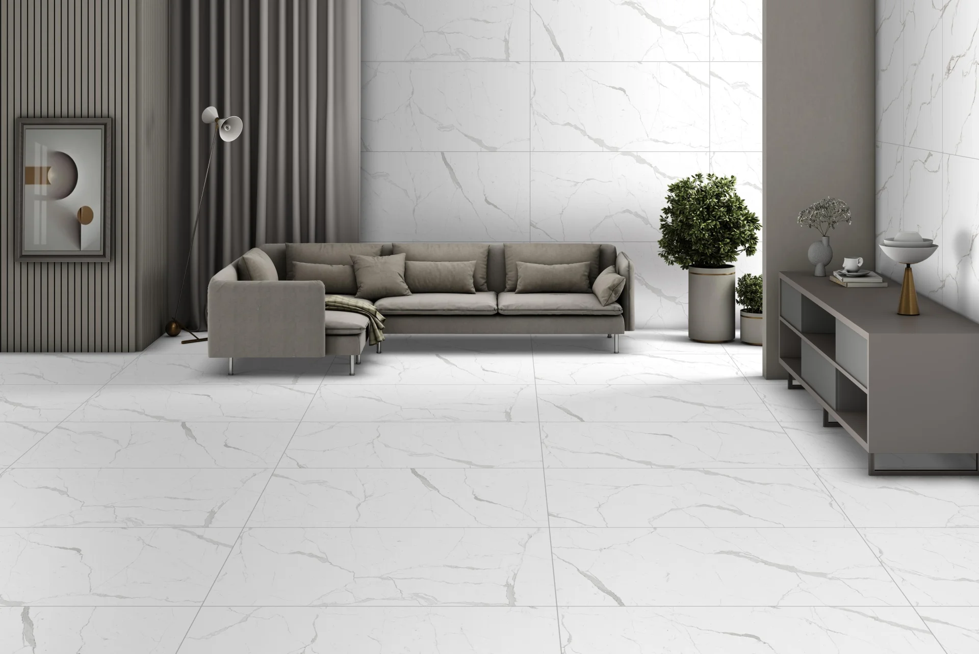 Gresia STATUARIO NATURAL îmbină eleganța atemporală a marmurei cu performanța tehnică a gresiei porțelanate.