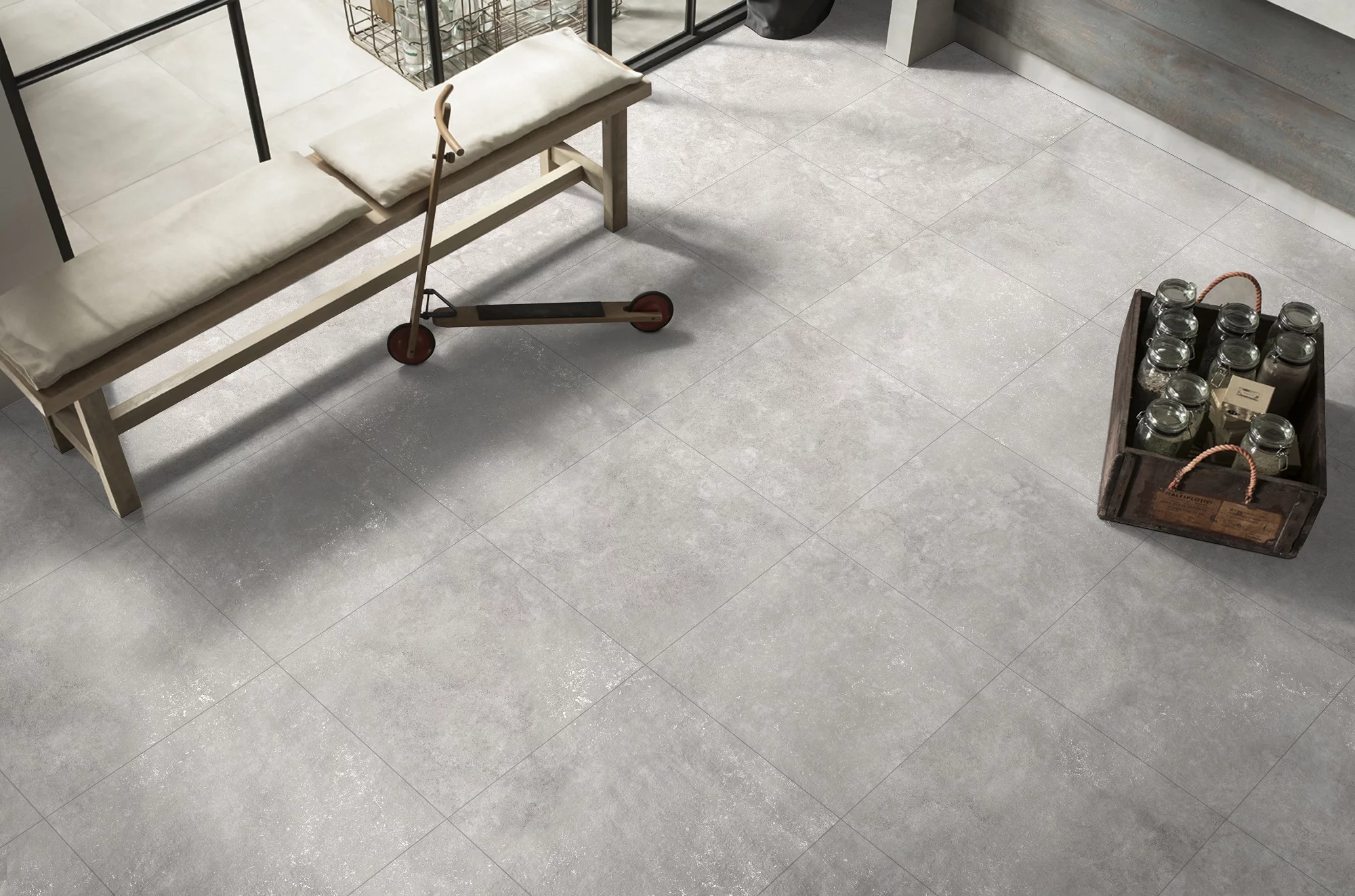 Formatul 60x60 cm, rectificat, permite montaj cu rosturi minime, oferind un finisaj continuu și sofisticat.