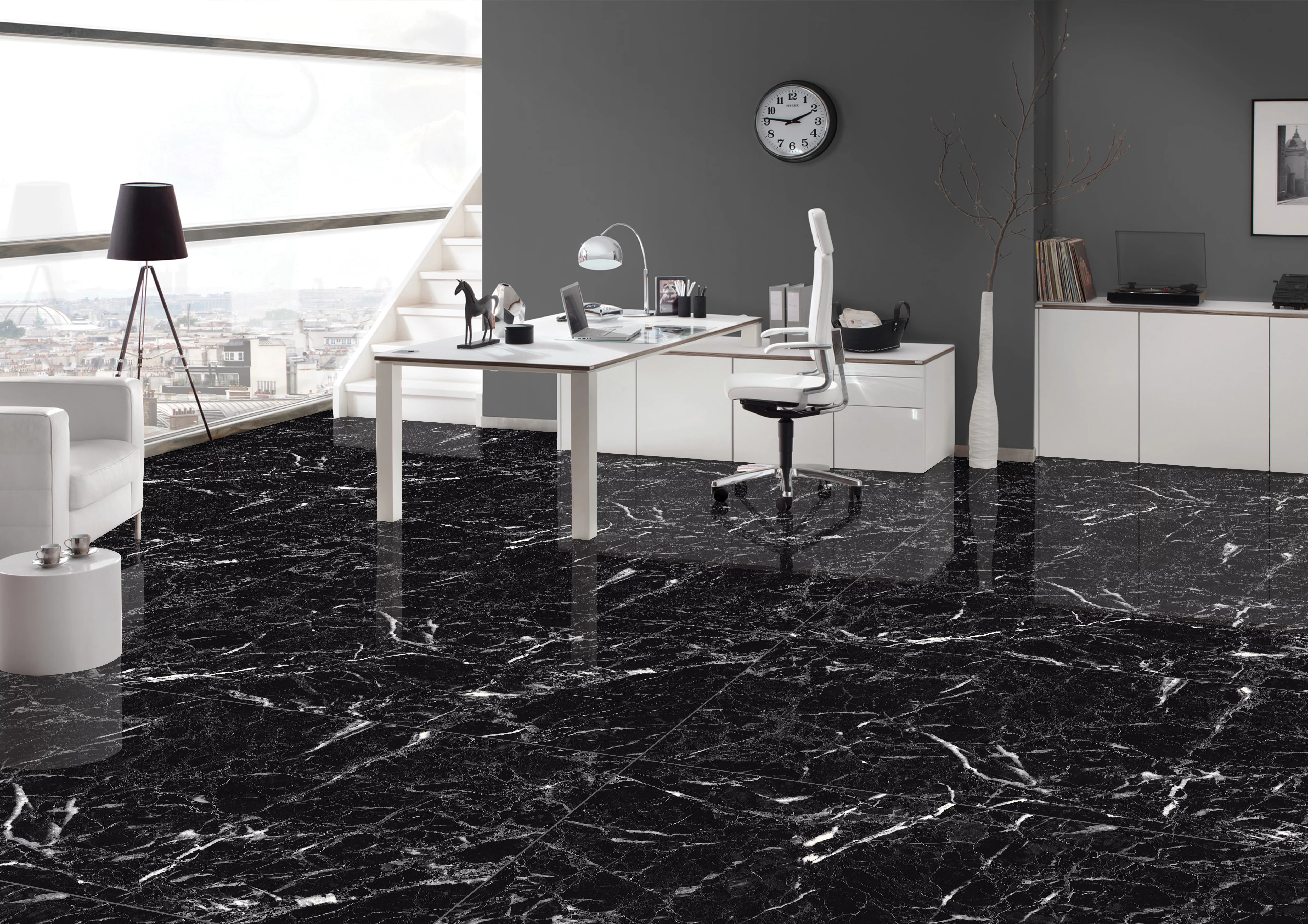Gresia NEW HG BLACK EMPERADOR este o gresie porțelanată premium, ce imită frumusețea marmurei negre cu nervuri albe fine, oferind un efect dramatic și sofisticat.