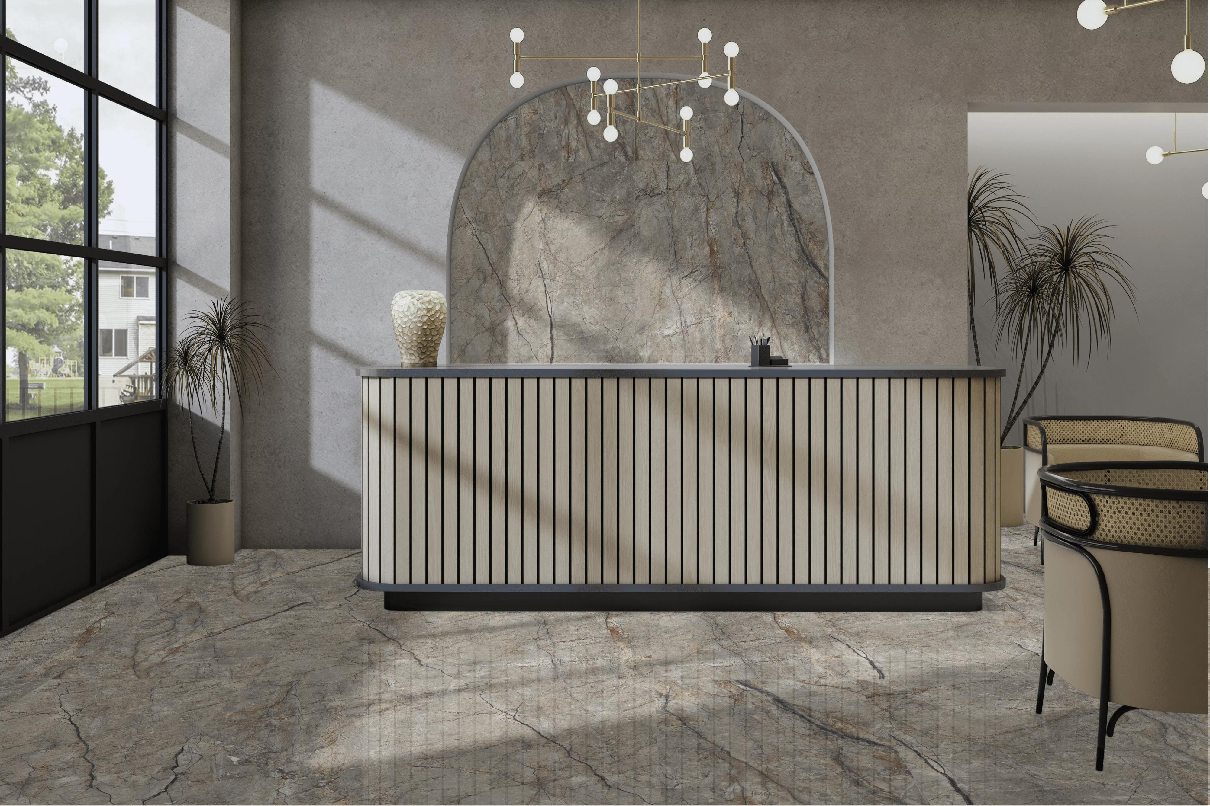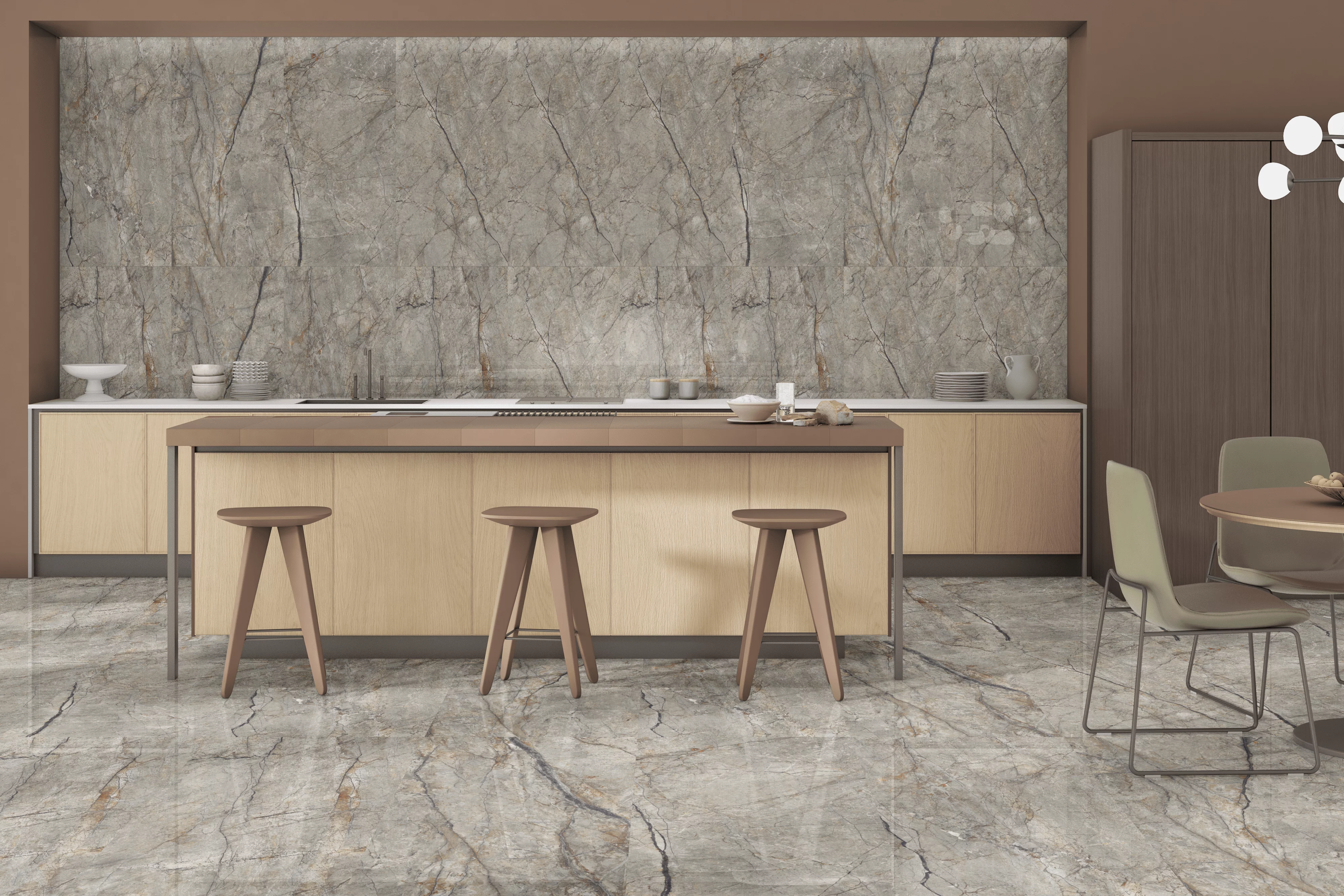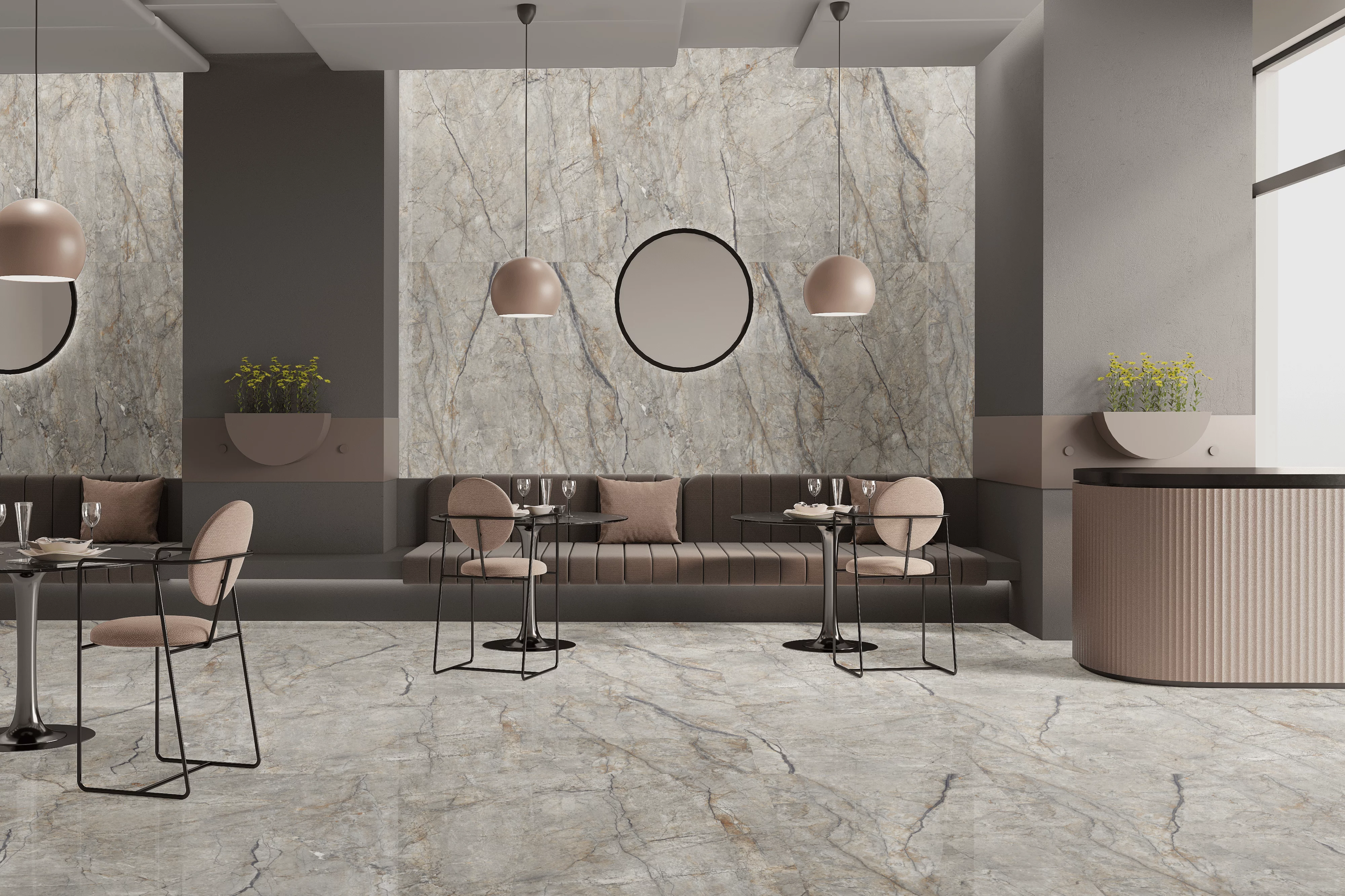 • Culoare de bază: gri cu vene naturale și accente calde