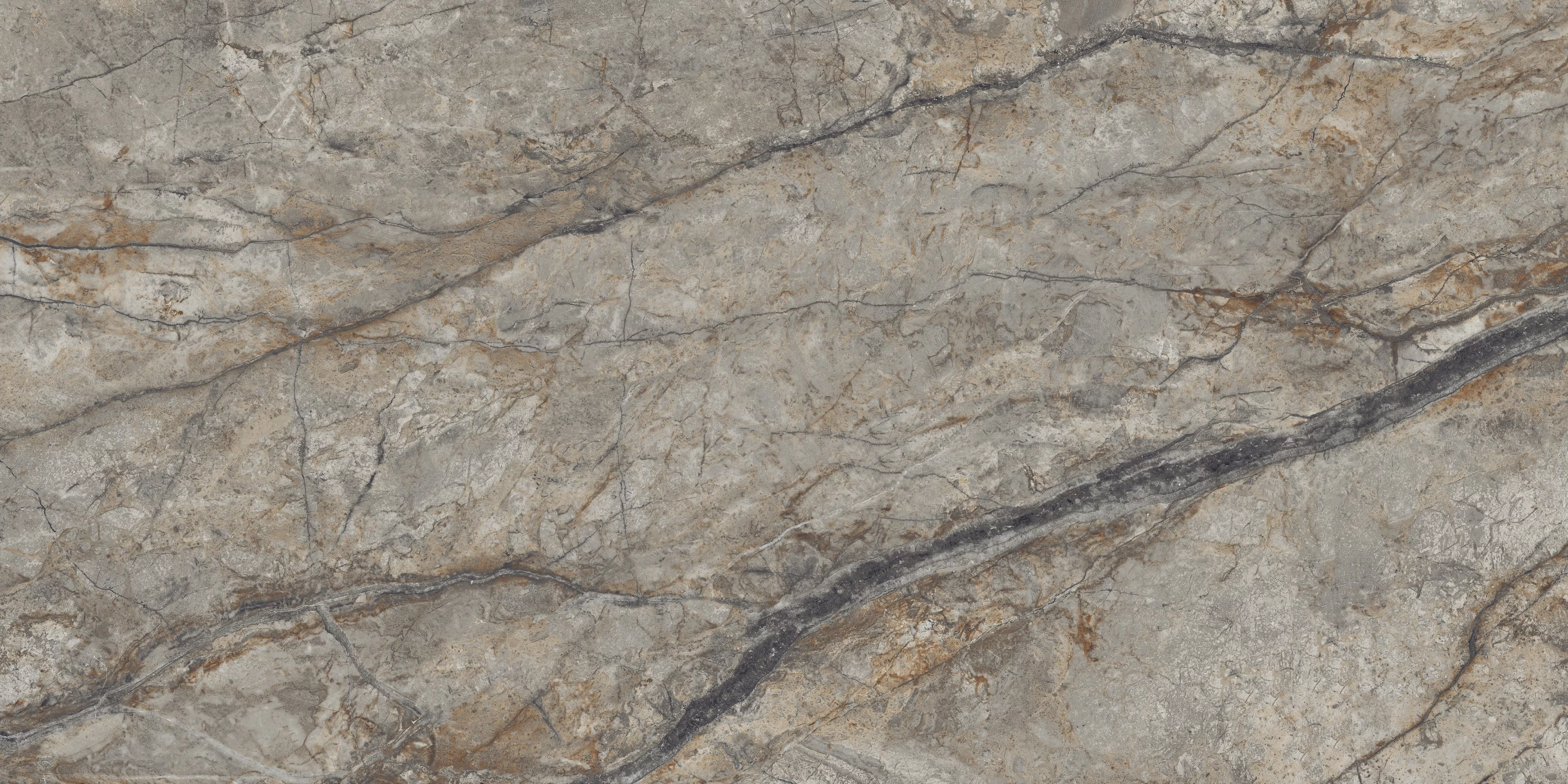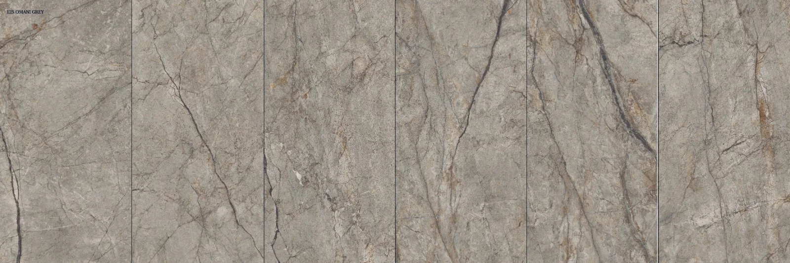 GRESIE 125 OMANI GREY - 60X120 cm, porțelanată vitrificată, lucioasă, rectificată, gri cu nervuri naturale, ideală pentru interioare și exterioare elegante.