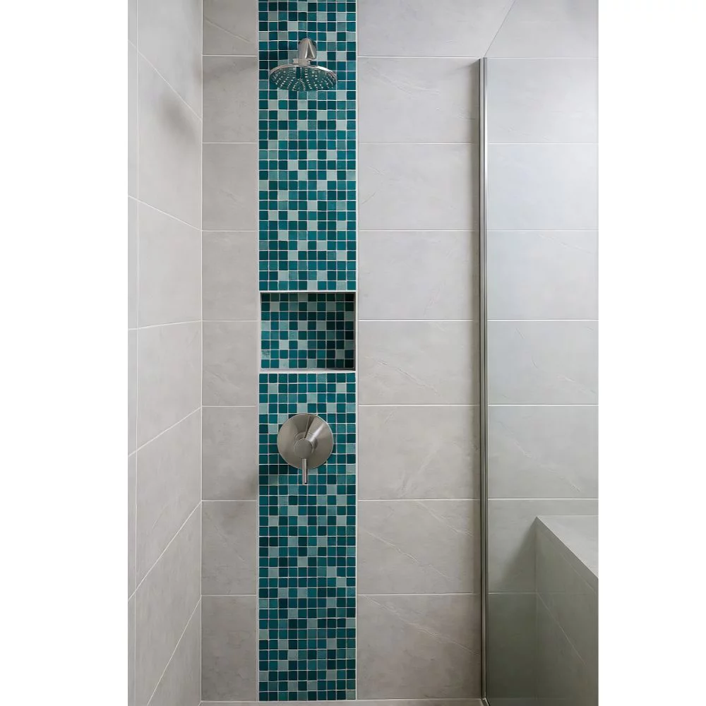 Mozaicul TURQUOISE MIX aduce un aer proaspăt și vibrant în orice spațiu, datorită combinației armonioase de nuanțe turcoaz, albastru deschis și bleumarin.