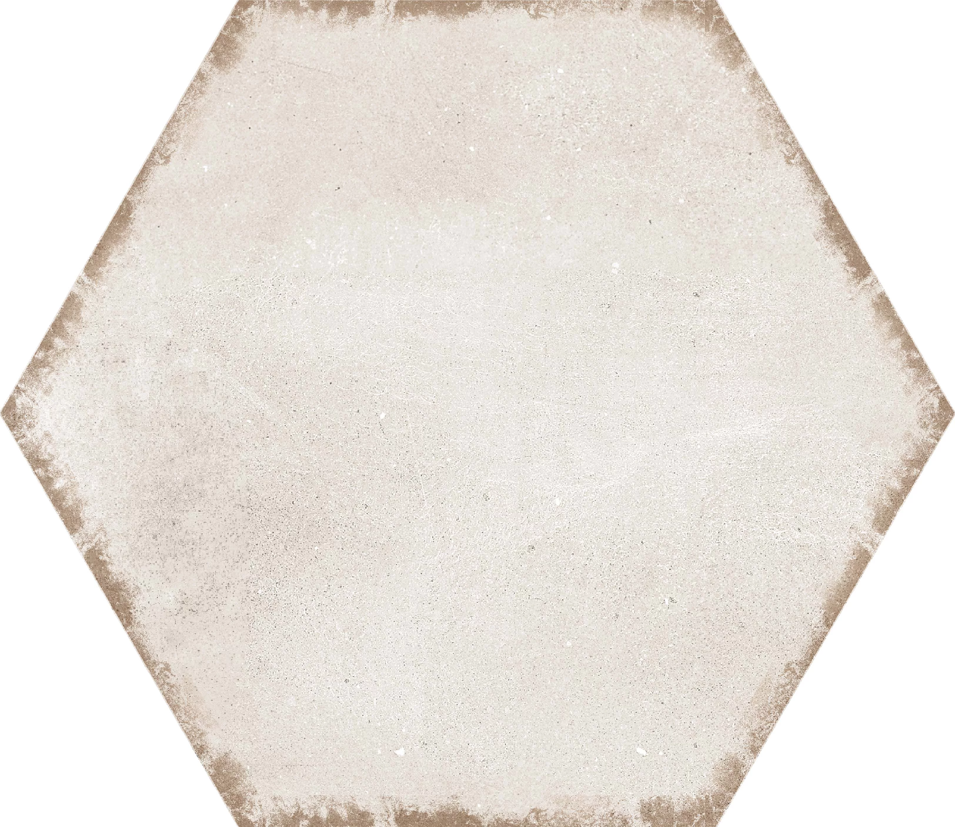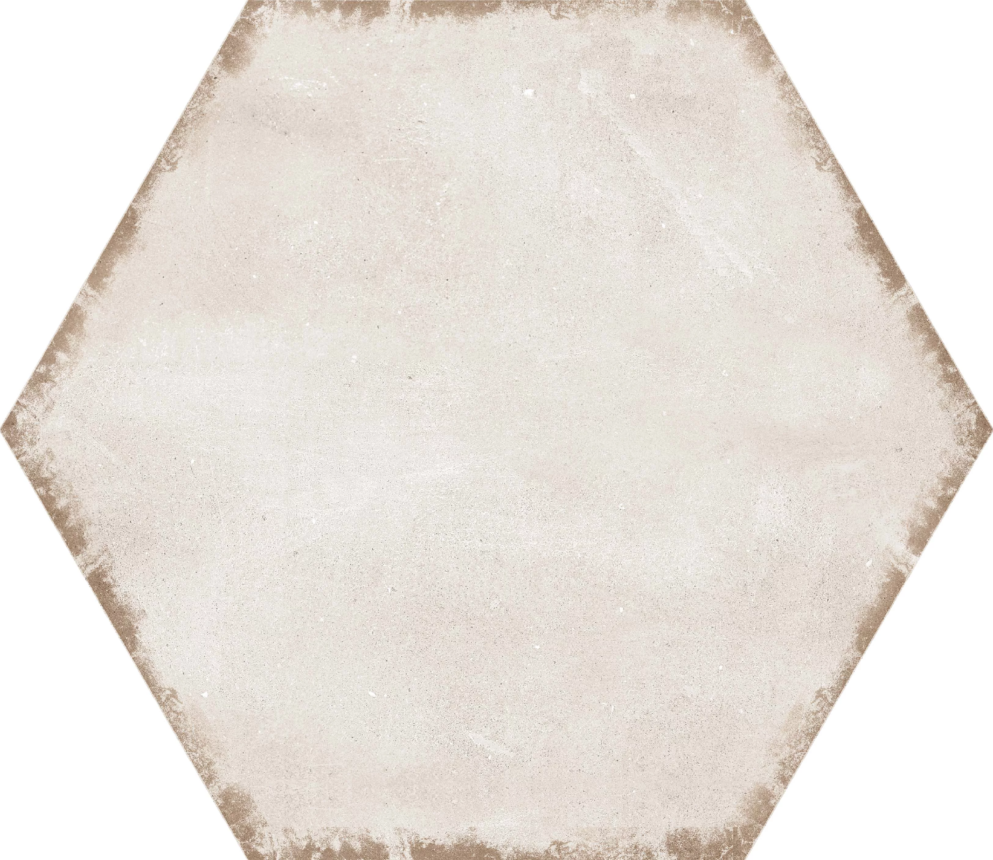GRESIE HEXAGON LENDAR - 21.5X25 cm, portelanată, glazurată, nerectificata, finisaj mat în nuanță bej deschis. Potrivită pentru utilizare interioară și exterioară, ideală pentru spații cu trafic intens.