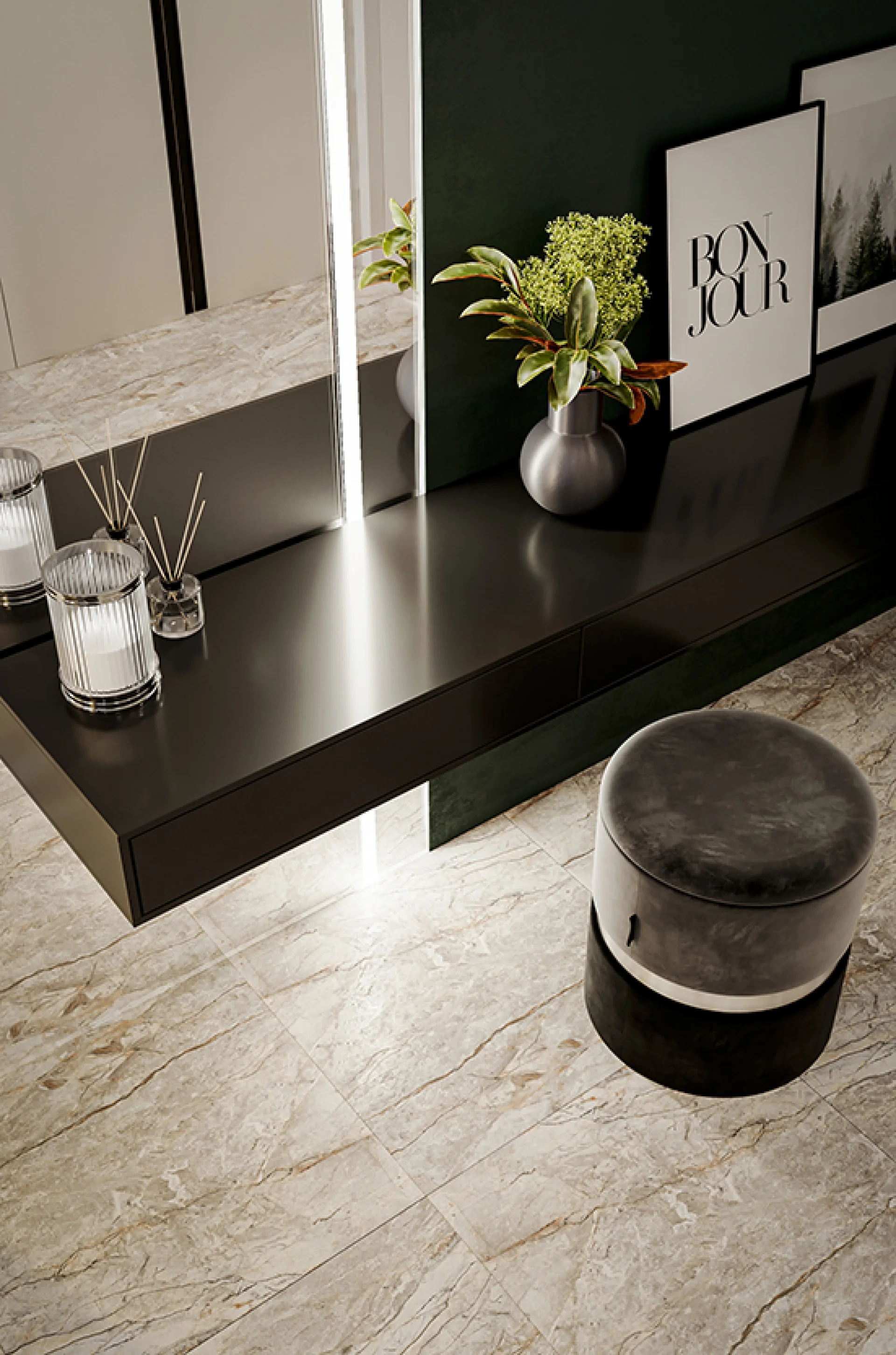 • Ideală pentru pardoseli și pereți în livinguri, holuri, bucătării, terase sau spații comerciale cu trafic mediu.