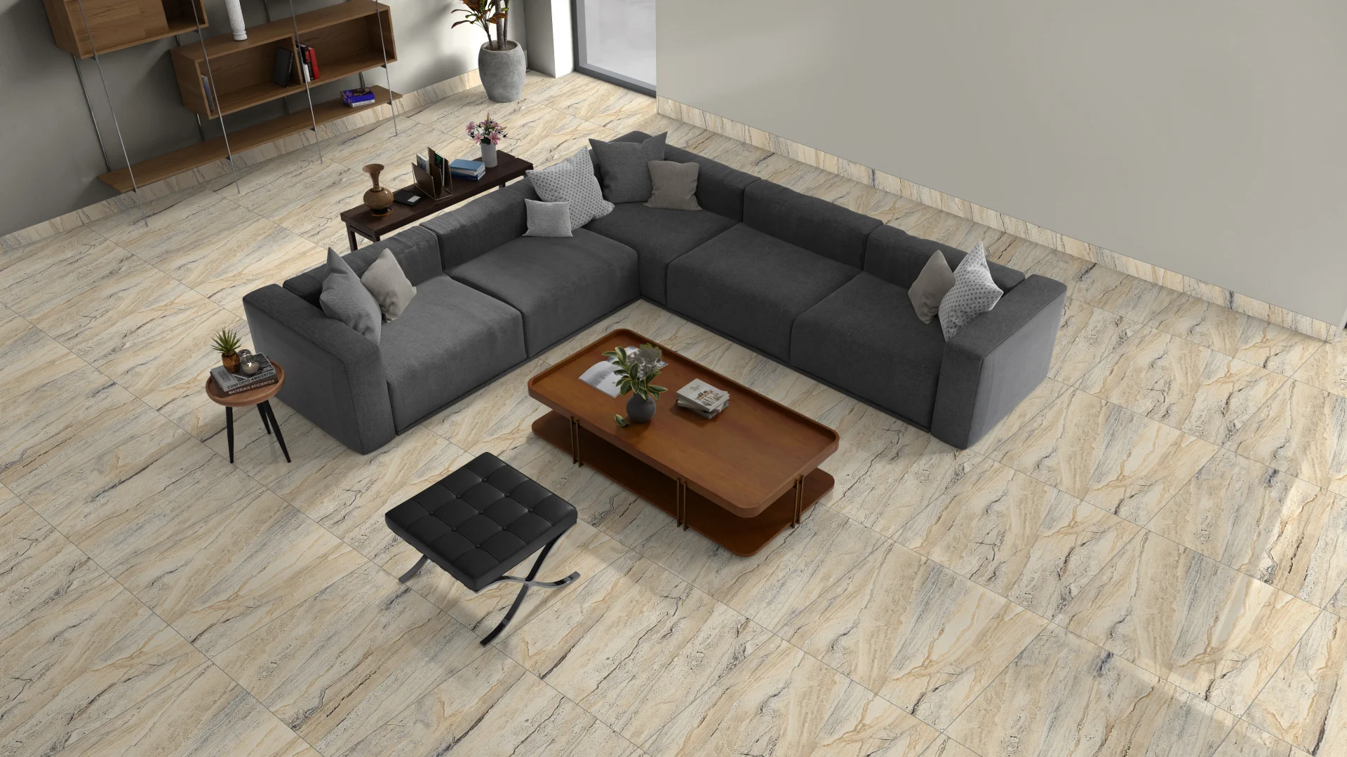 Cu nuanțe calde de bej și vene discrete, aceasta se integrează armonios cu gresia din colecția Irno, menținând același design natural.