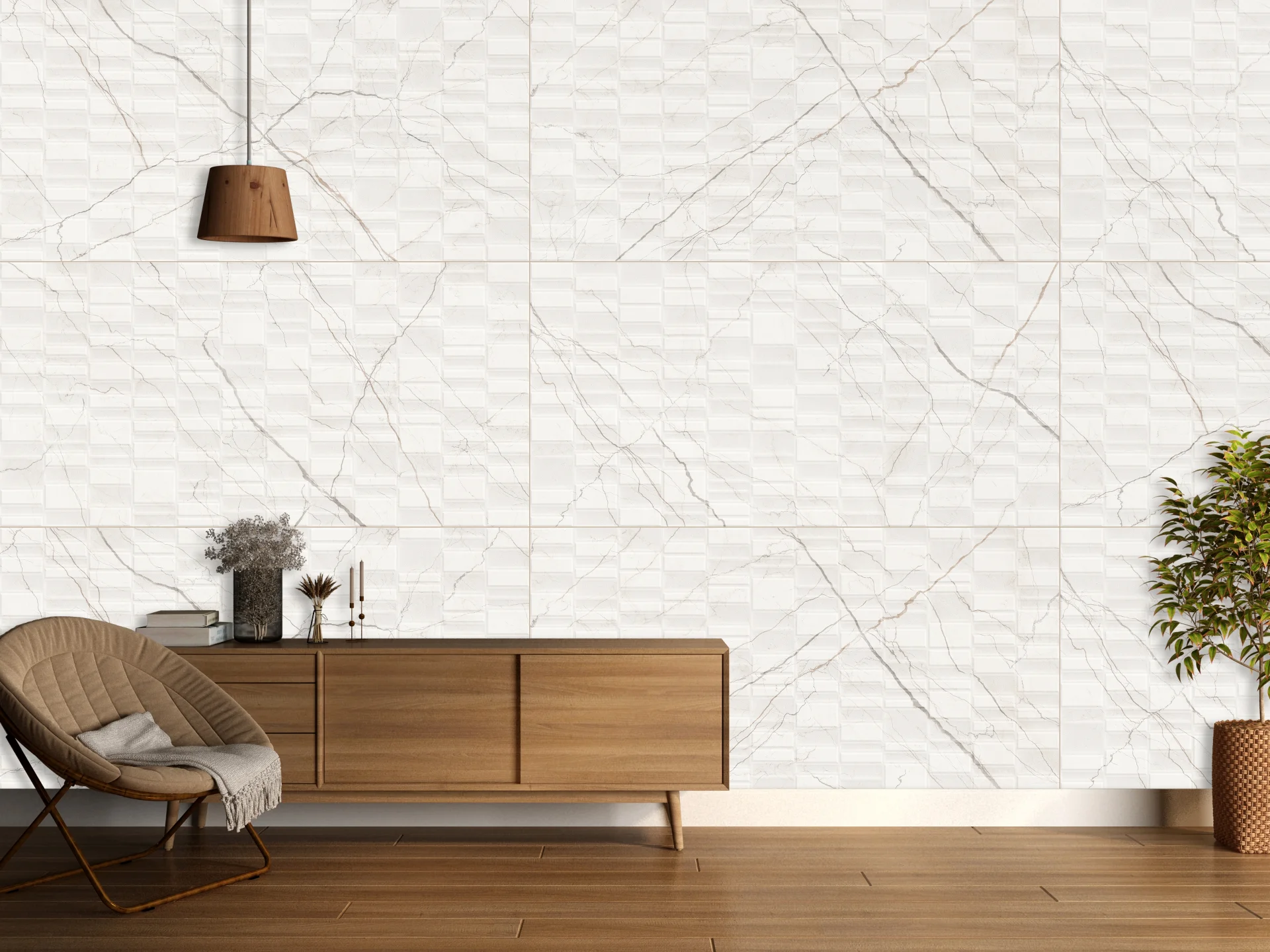 Gresia ARISTO BIANCO VEGA aduce un efect spectaculos prin îmbinarea rafinamentului marmurei naturale cu un finisaj embosat ce creează forme geometrice subtile.