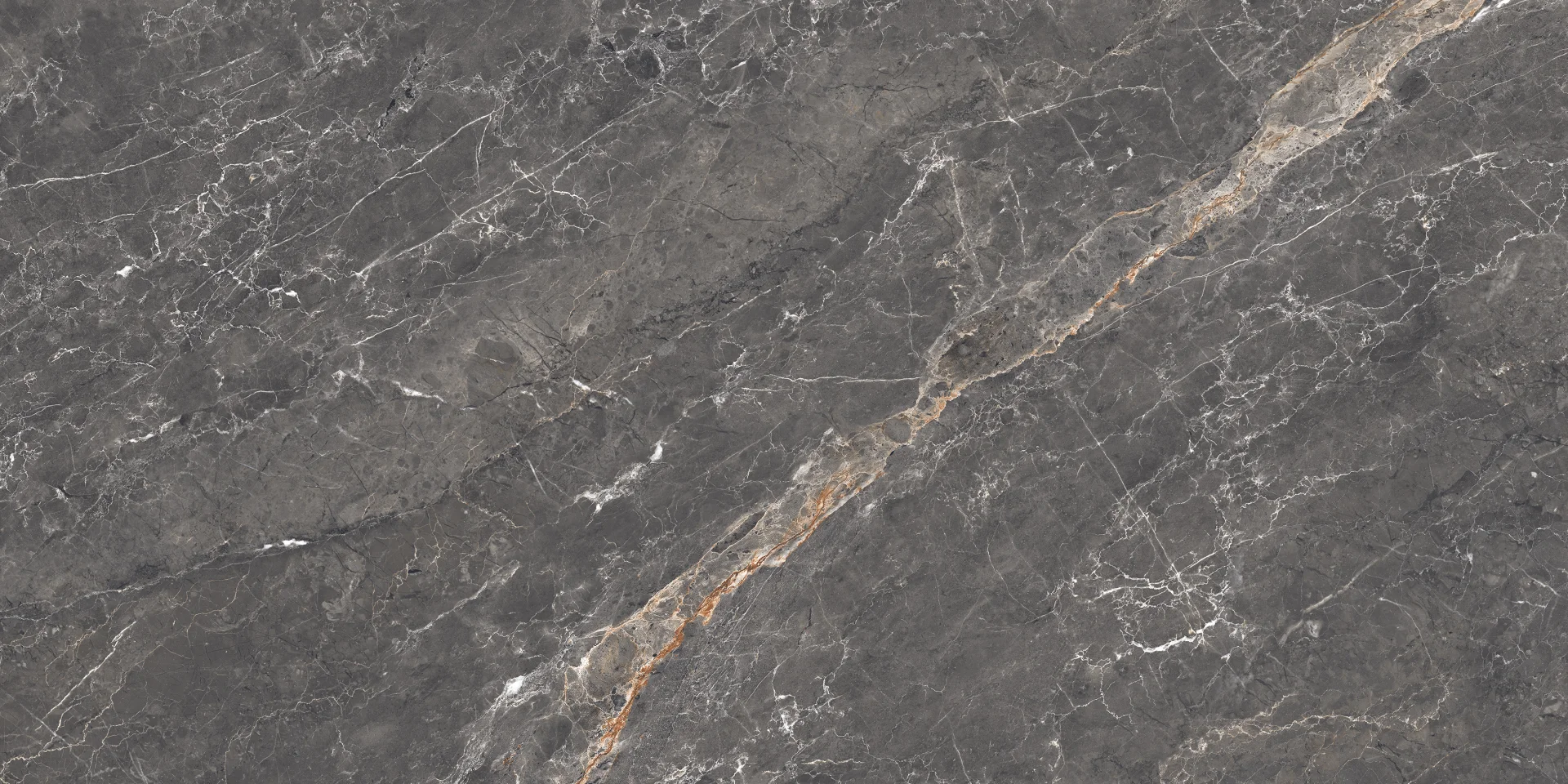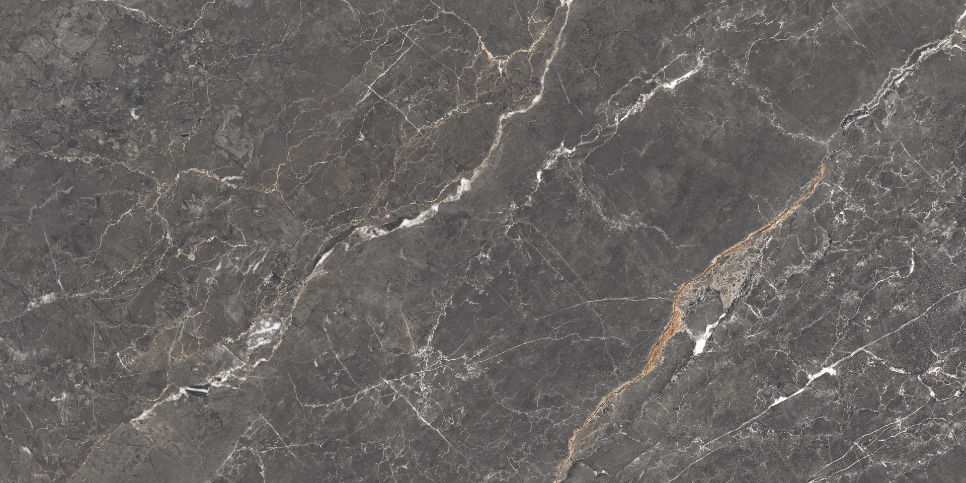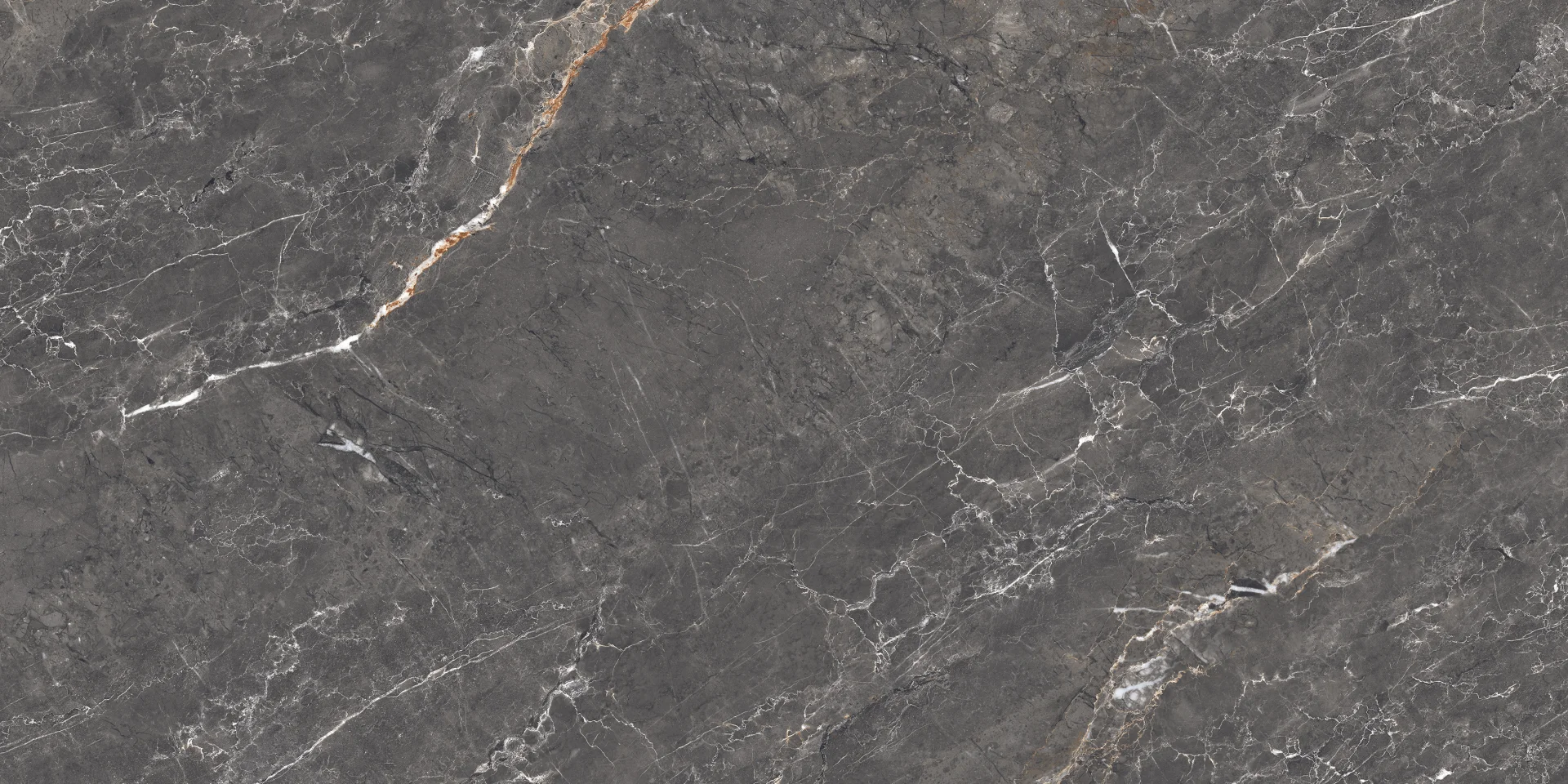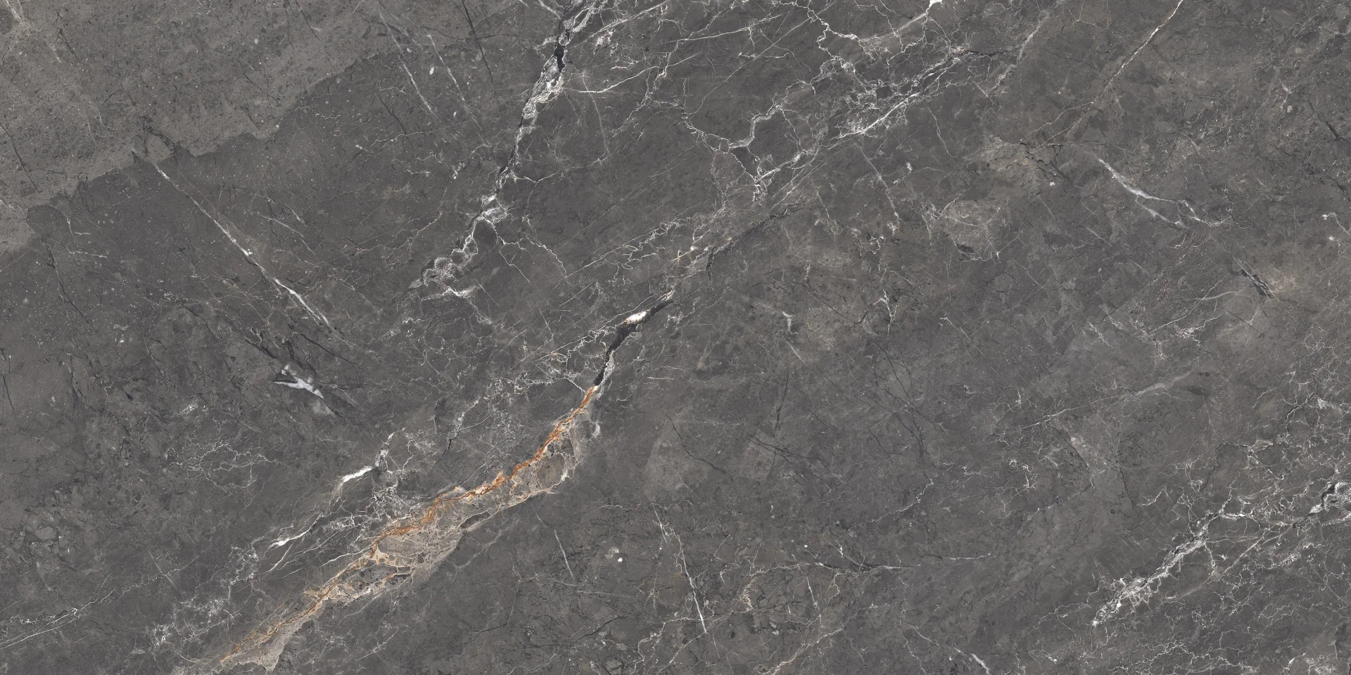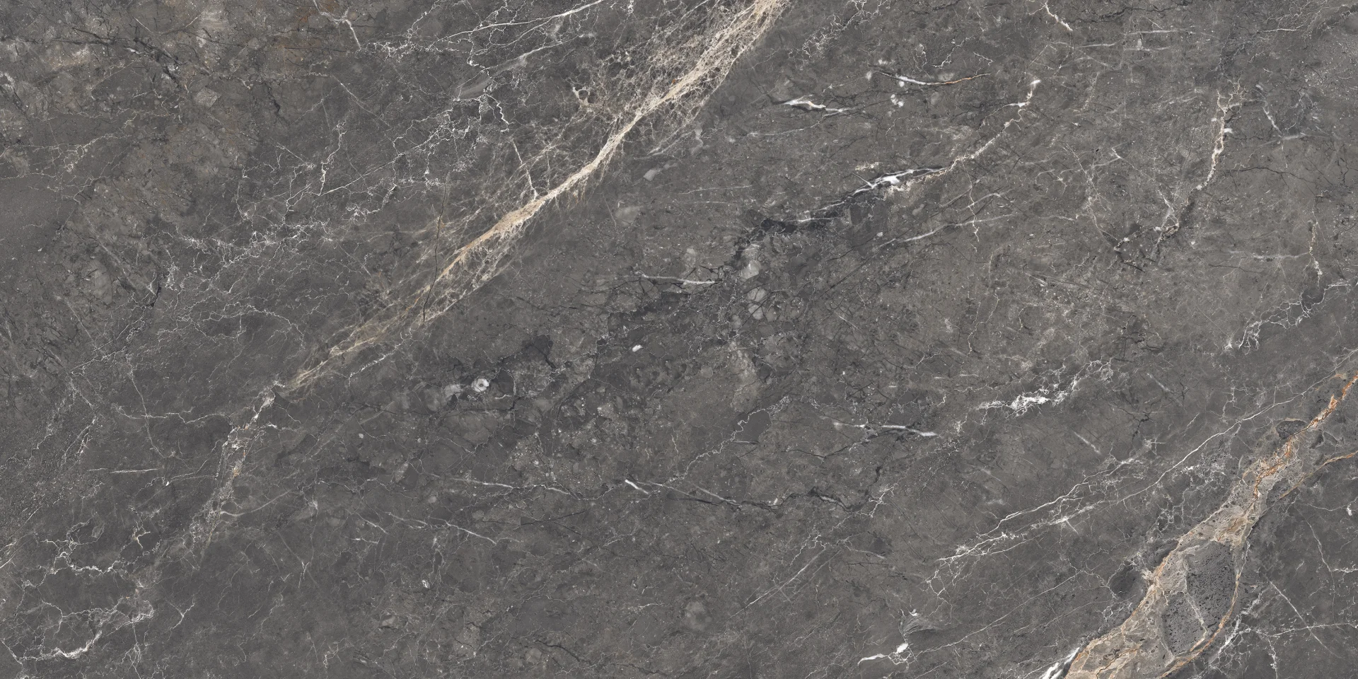GRESIE CARVING ORBITO MIST - 60X120 cm, porțelanată, aspect de marmură neagră cu inserții bej și gri, nuanță închisă, finisaj mat cu efect carving, ideală pentru interioare și exterioare moderne.