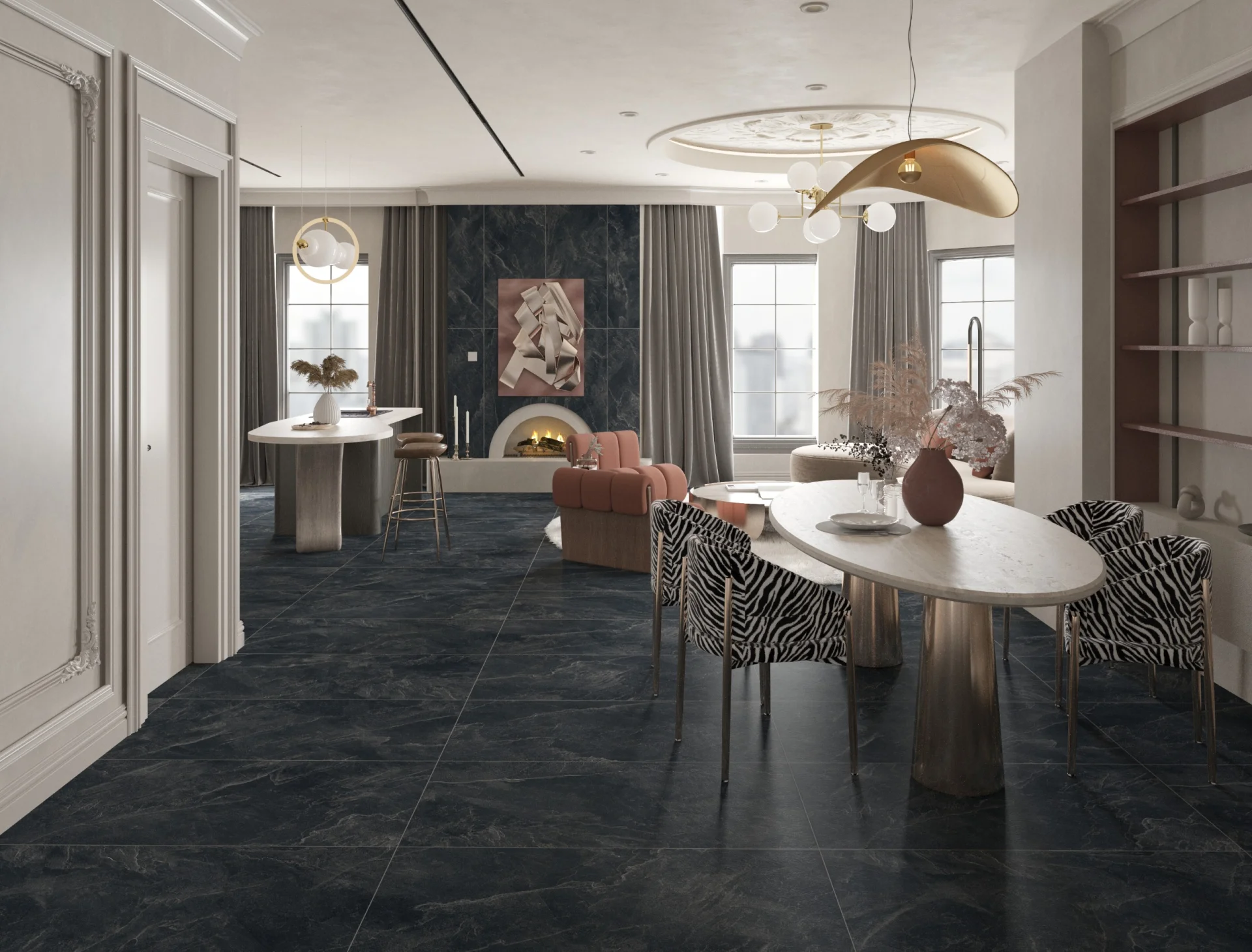 Gresia ARCHIE NERO GHR este o gresie porțelanată de calitate superioară, glazurată și rectificată, cu un design în tonuri de gri închis ce reproduce fidel textura naturală a pietrei.