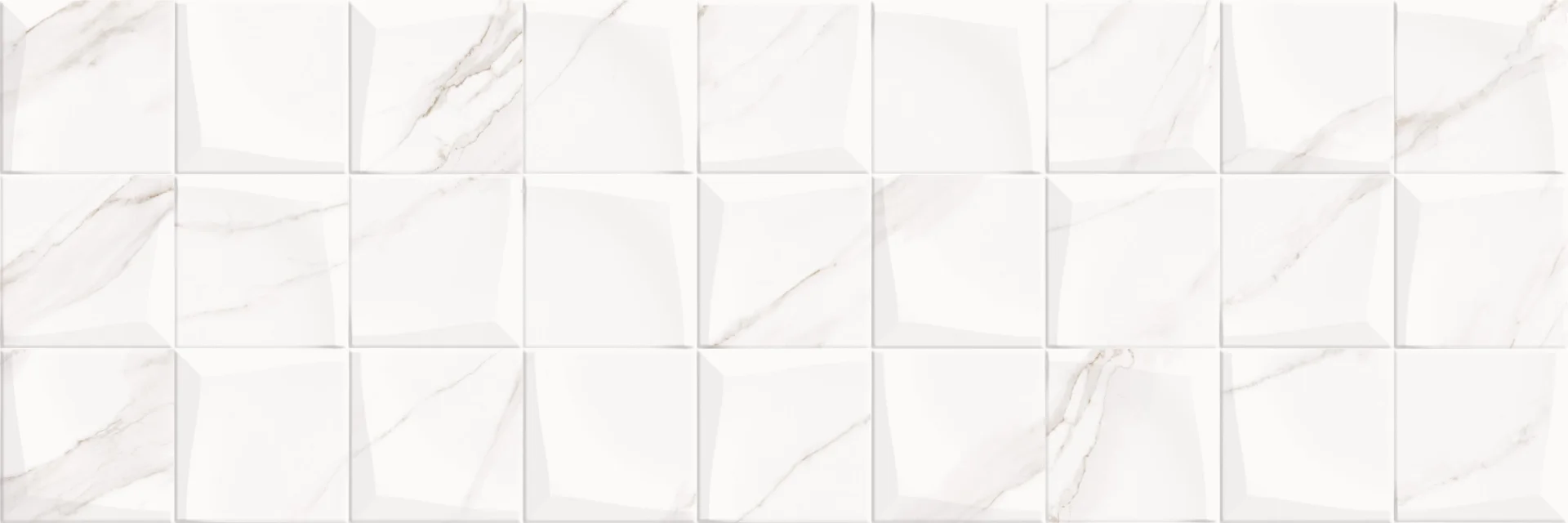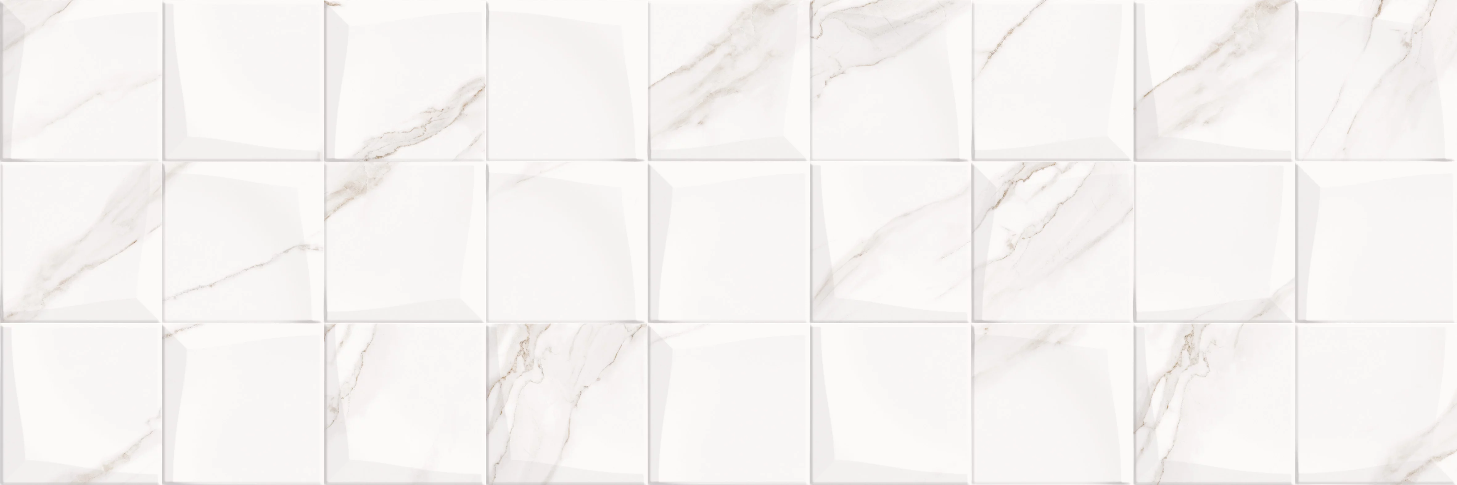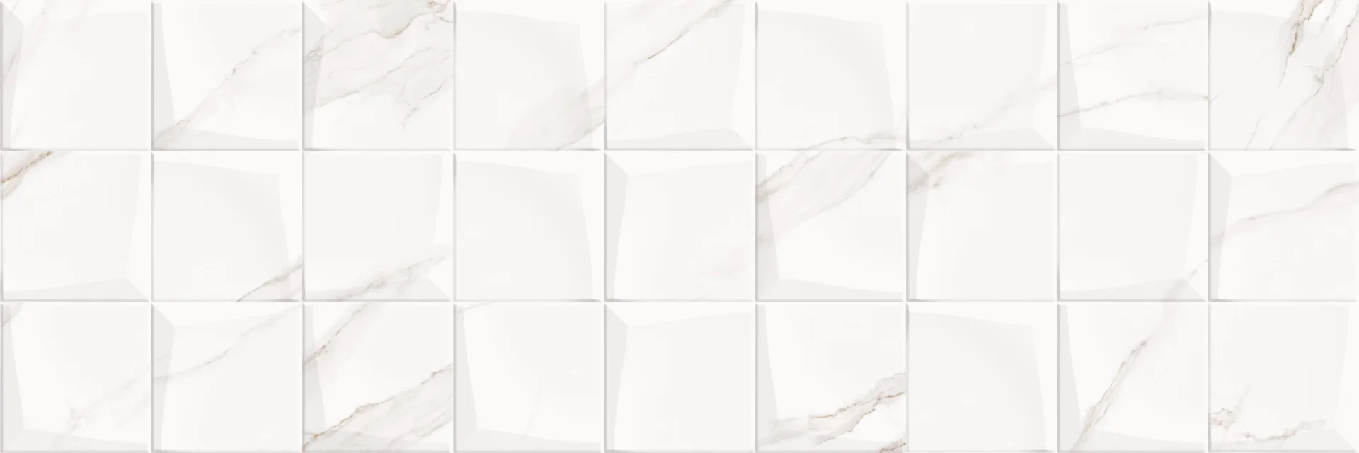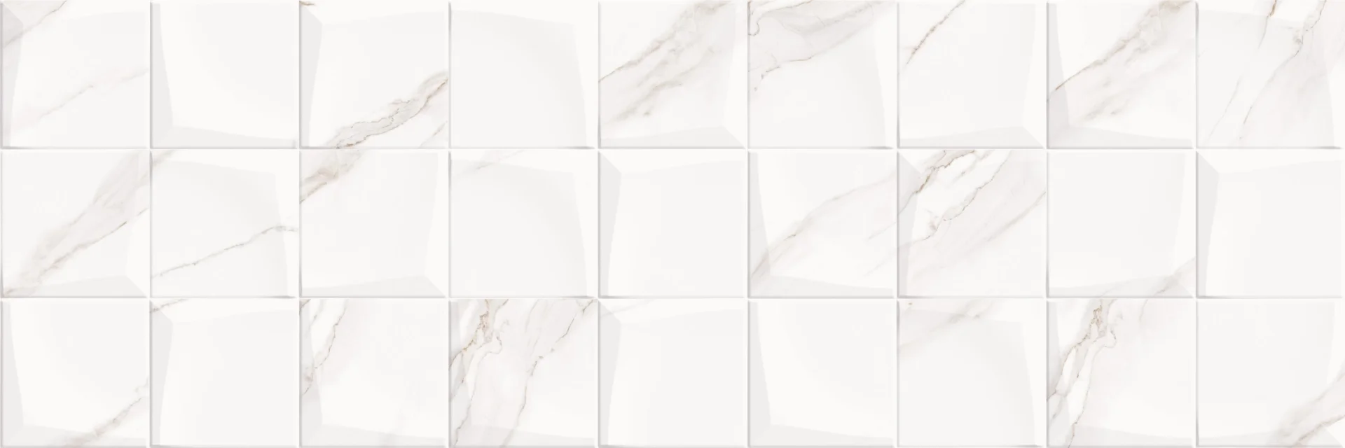 FAIANTA G CALACATA SIENA HL - 30X90 cm, ceramica glazurata, design marmorat alb cu vinișoare bej-aurii și efecte 3D geometrice, finisaj mat cu accente lucioase, ideală pentru decorarea pereților interiori.