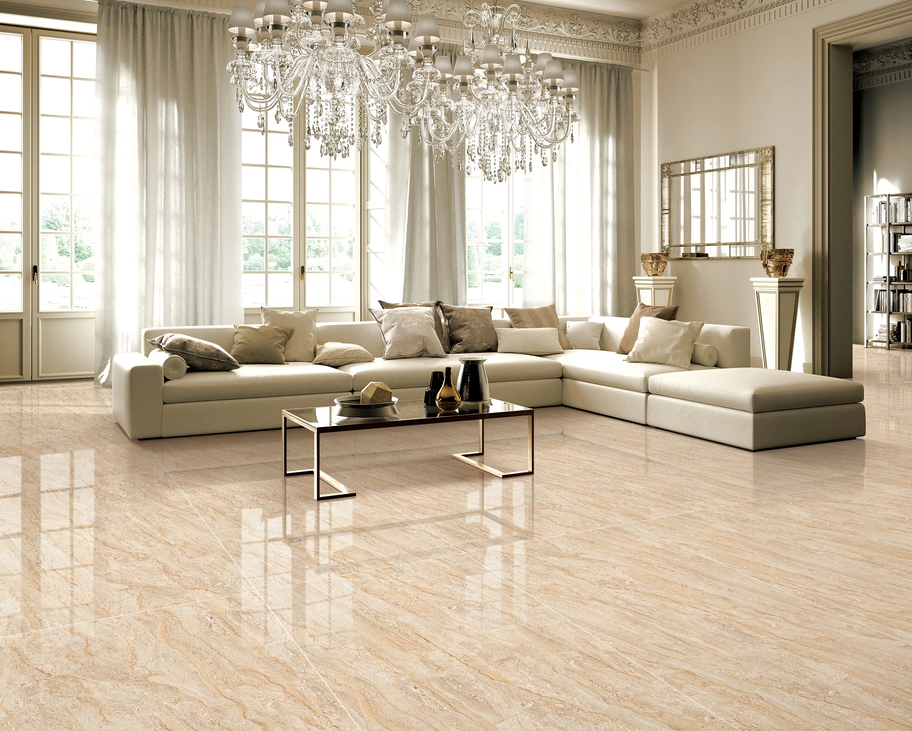 GRESIE VENETO GRANDE IMPERUS - 60X120 cm, porțelanată lucioasă, nuanțe calde de bej cu efect de piatră naturală, rectificată, pentru un design elegant și luminos.